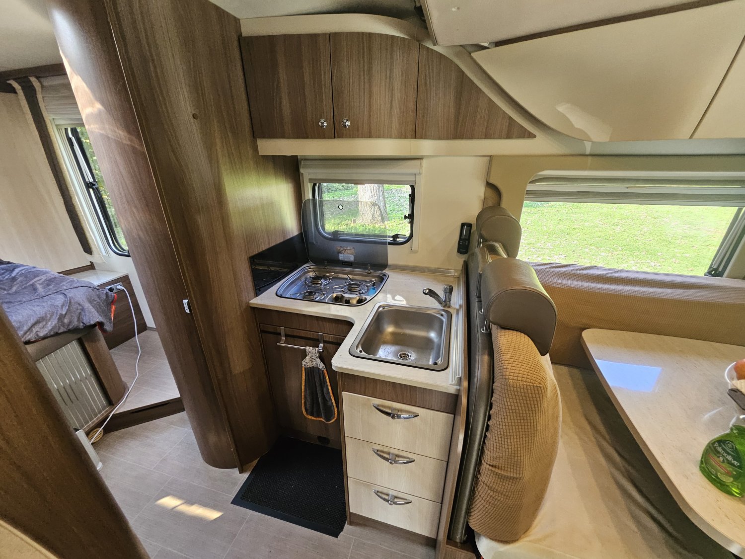 CHAUFFAGE COMBI TRUMA 4, REFRIGERATEUR/CONGELATEUR, STORE EXTERIEUR 4M, GAZINIERE 3 FEUX, PORTE SEPARATRICE, CUISINE EN L, DINETTE EN L, DOUCHE ET WC SEPARES, ECLAIRAGE LED, MOQUETTE CABINE, MOUSTIQUAIRE DE PORTE CELLULE, REFRIGERATEUR TRI MIX, MARCHEPIED INTÉGRÉ, CLIMATISEUR DE SOUTE