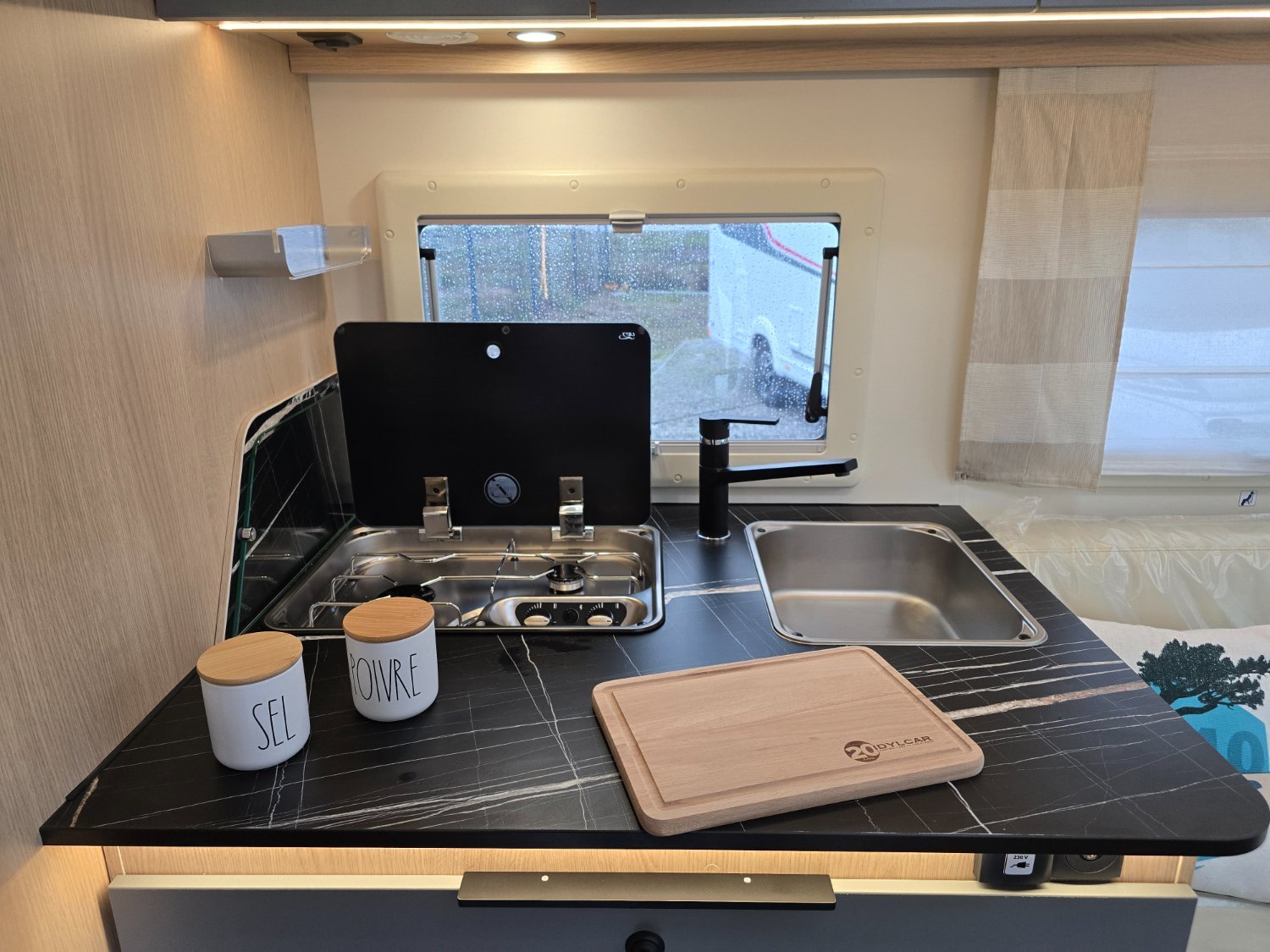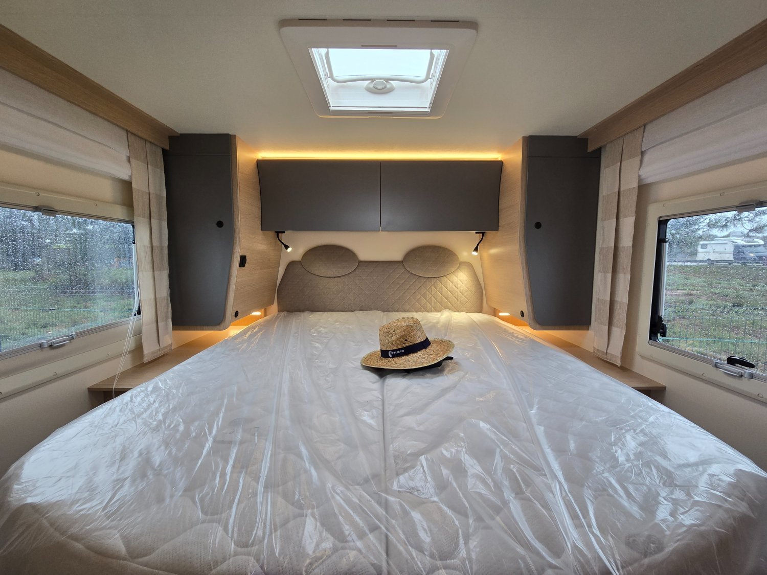 °PACK PRIVILÈGE (caméra de recul, douchette extérieure, matelas à mémoire de forme, rideau d'occultation de cabine, station multimédia 9 Android Auto/Carplay, détendeur de gaz duo avec inverseur)