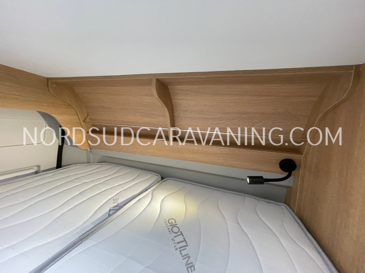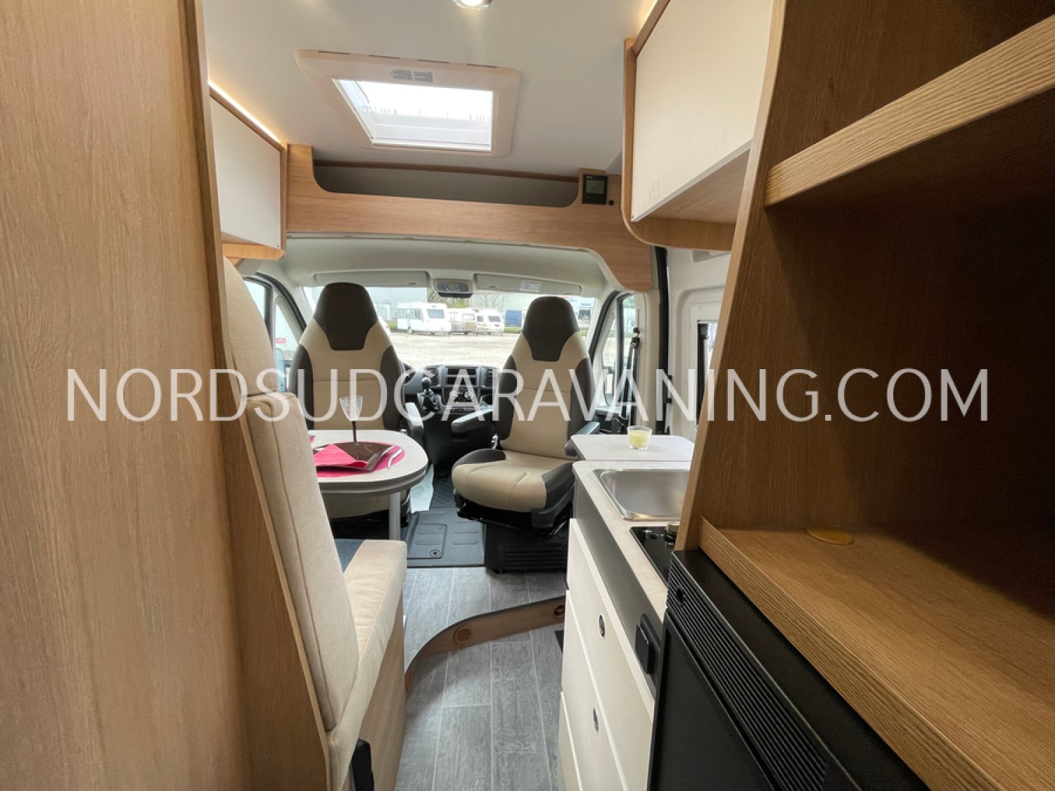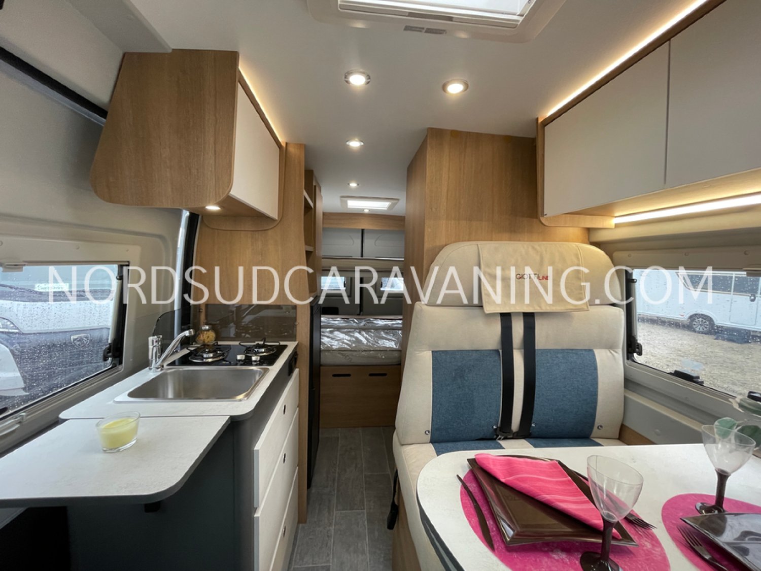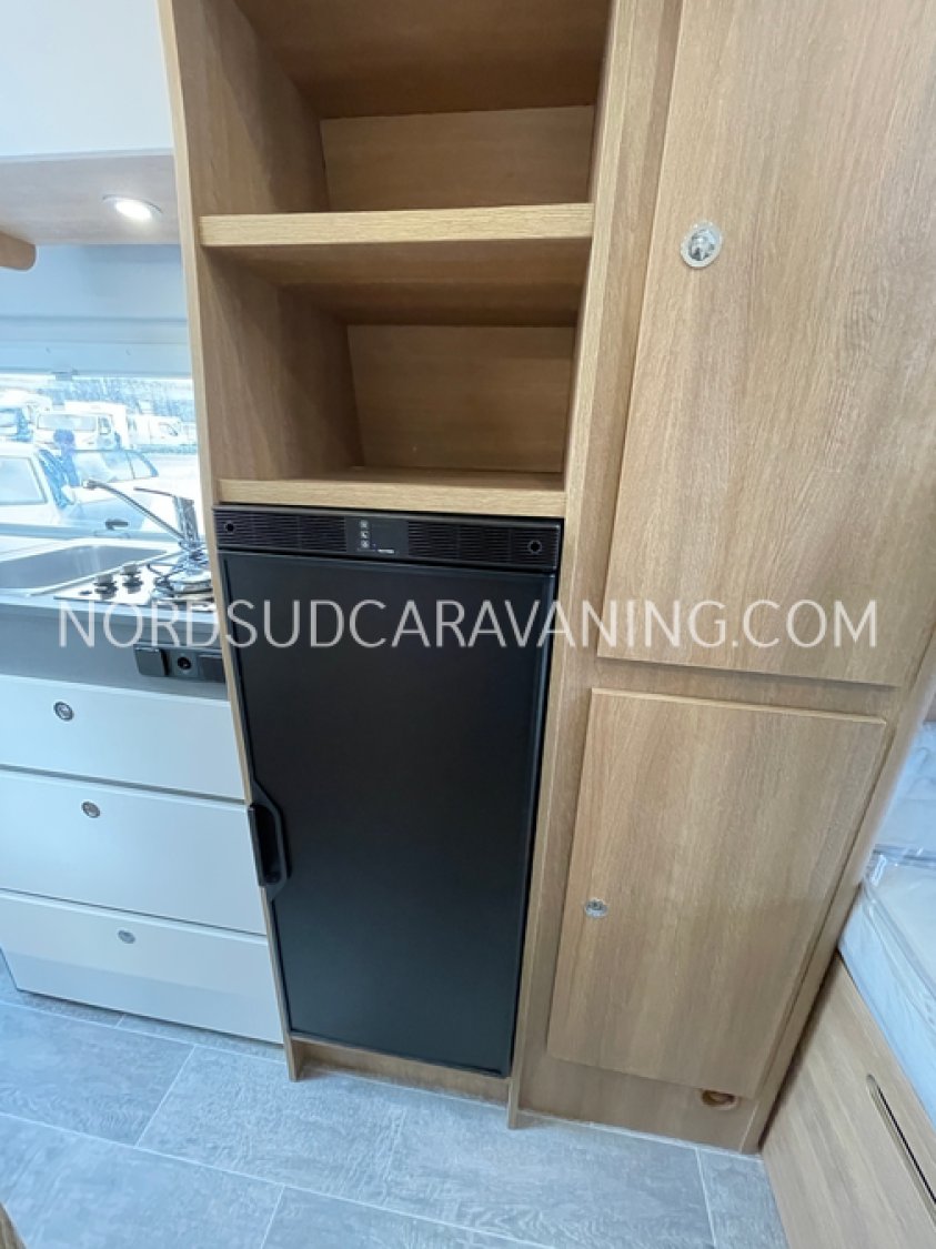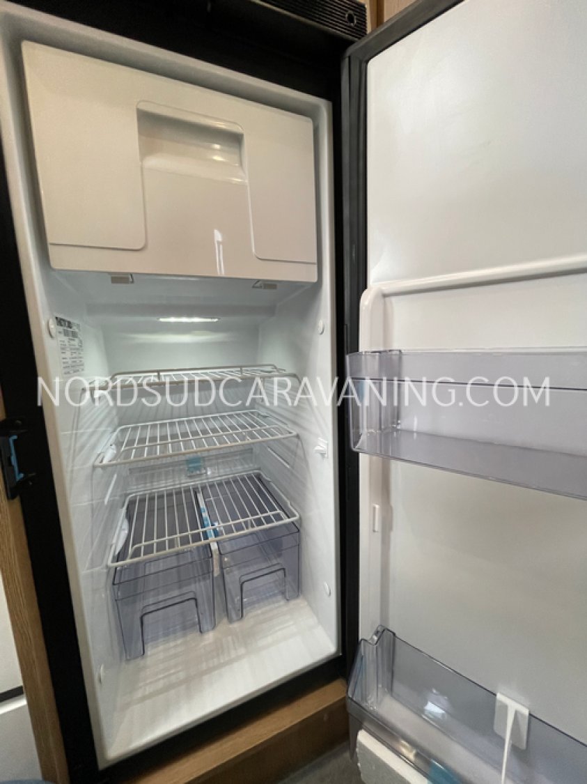 Avec ses 5,99 mètres de long, il propose un aménagement optimisé avec des lits superposés doubles modulables à l'arrière qui permettent selon les besoins de chacun de bénéficier de trois configurations : deux lits doubles superposés, un lit double en bas et une couchette en haut, ou alors un seul lit double en position basse. Une cuisine compacte et fonctionnelle avec réfrigérateur à compression, et une salle de bain avec douche intégrée.
