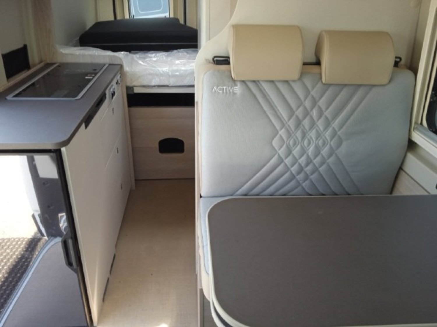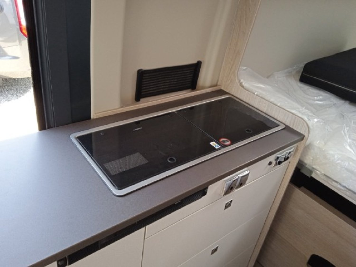Batterie cellule 95 Ah, Combiné chauffage / chauffe-eau Combi 4, Cuisine avec réchaud deux feux, Éclairage LED, Lavabo fixe et douche intégrée, MODELE NEUF D EXPOSITION, Programmateur digital CP Plus, Réfrigérateur à compression 84 litres, Rideaux occultants, WC Cassette