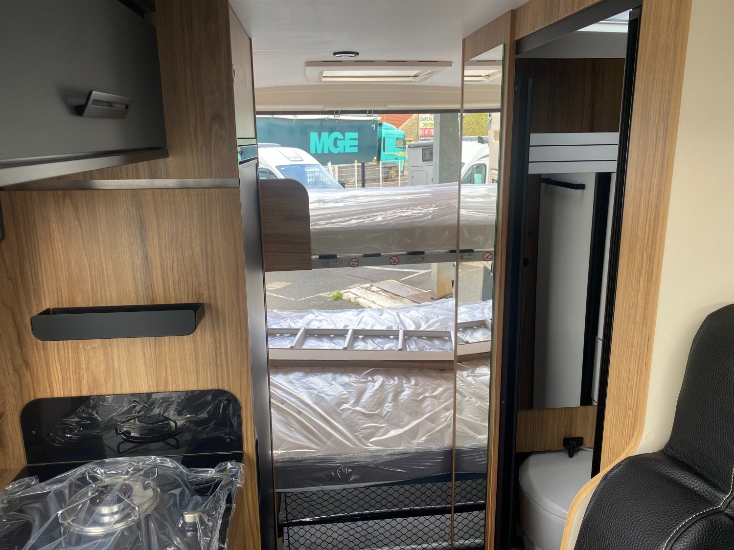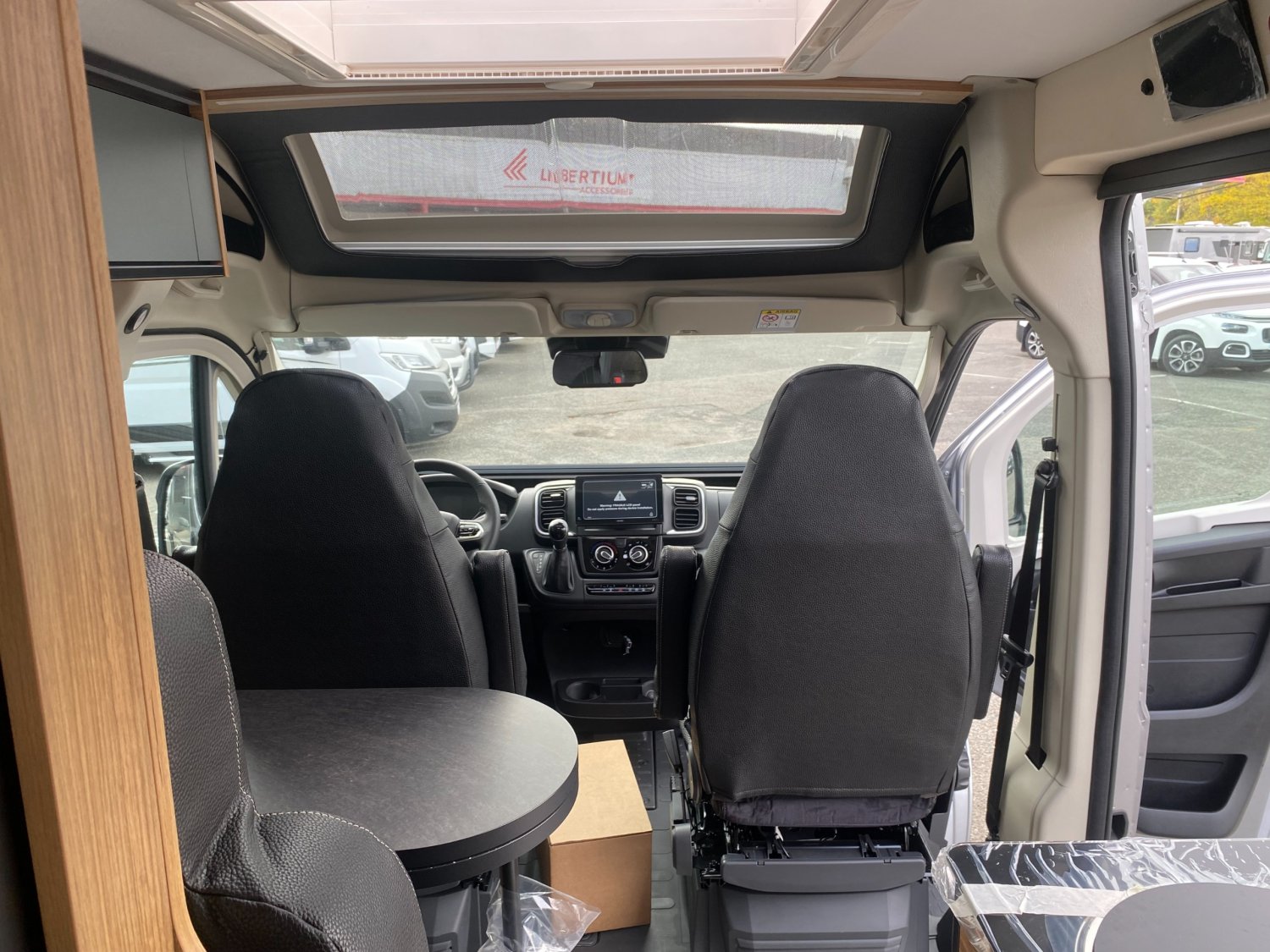 Moustiquaire de porte latérale, Store auvent, Caillebotis de douche, Douchette extérieure eau froide, Essuie-glaces avant automatiques avec détecteur de pluie, Pack Safety, Pack multimédia avec Apple CarPlay Android Auto, Régulateur de vitesse, Batterie Lithium 120 Ah, Boîte de vitesse automatique, Panneaux solaires, Système de prévention de collision, Reconnaissance des panneaux de vitesse, Réfrigérateur à compression 138 L, Rétro-camera de recul, Rétroviseurs à commande électrique et dégivrants, Sonde de réchauffage du réservoir des eaux usées, Alerte de franchissement de ligne, Chargeur de batterie DC-DC, Climatisation avant de cabine, Combiné chauffage - chauffe-eau Truma D4 gasoil avec kit alt, Jantes Alu 16", Limiteur de vitesse, Airbags conducteur et passager, Suspension renforcée