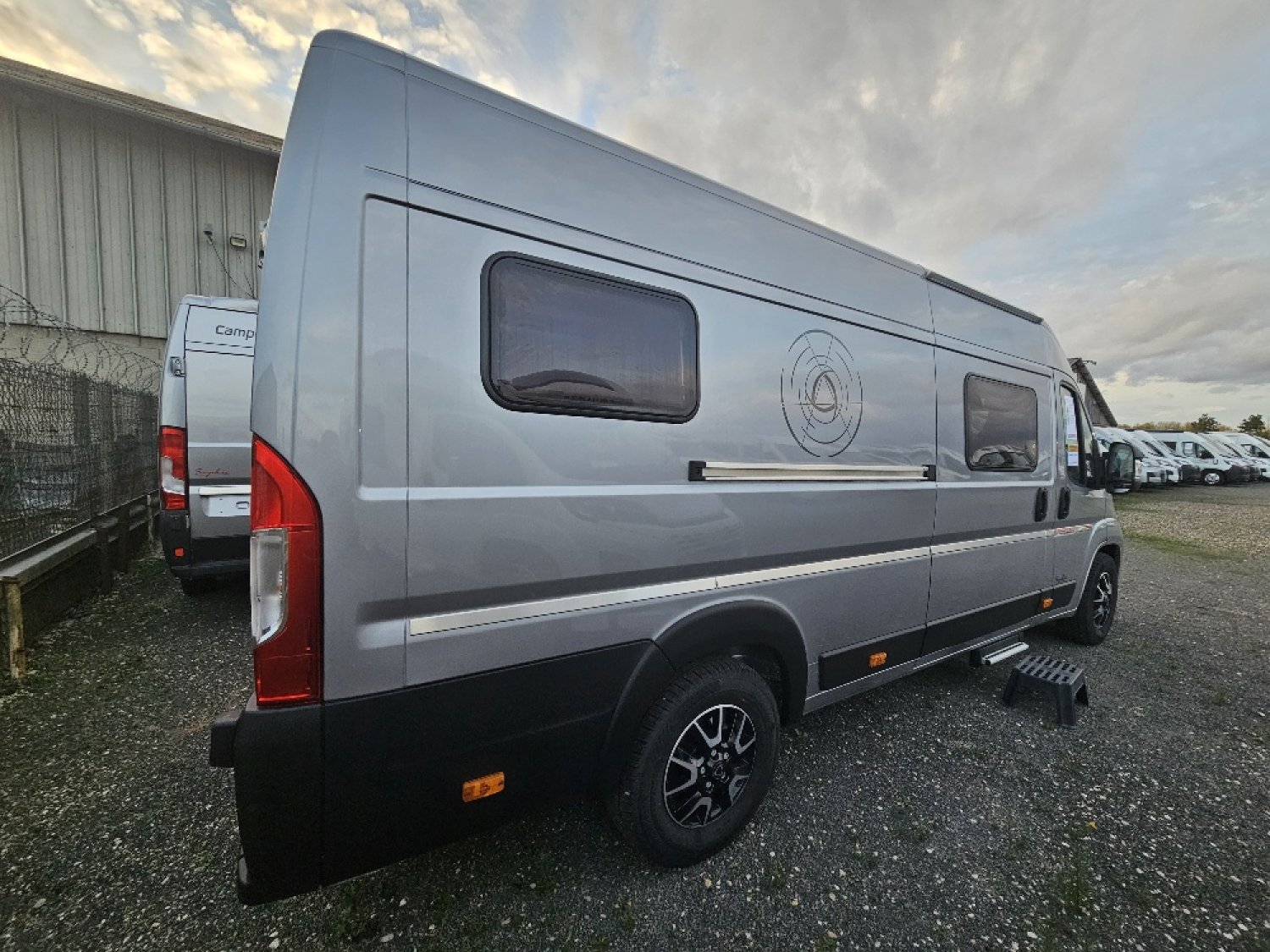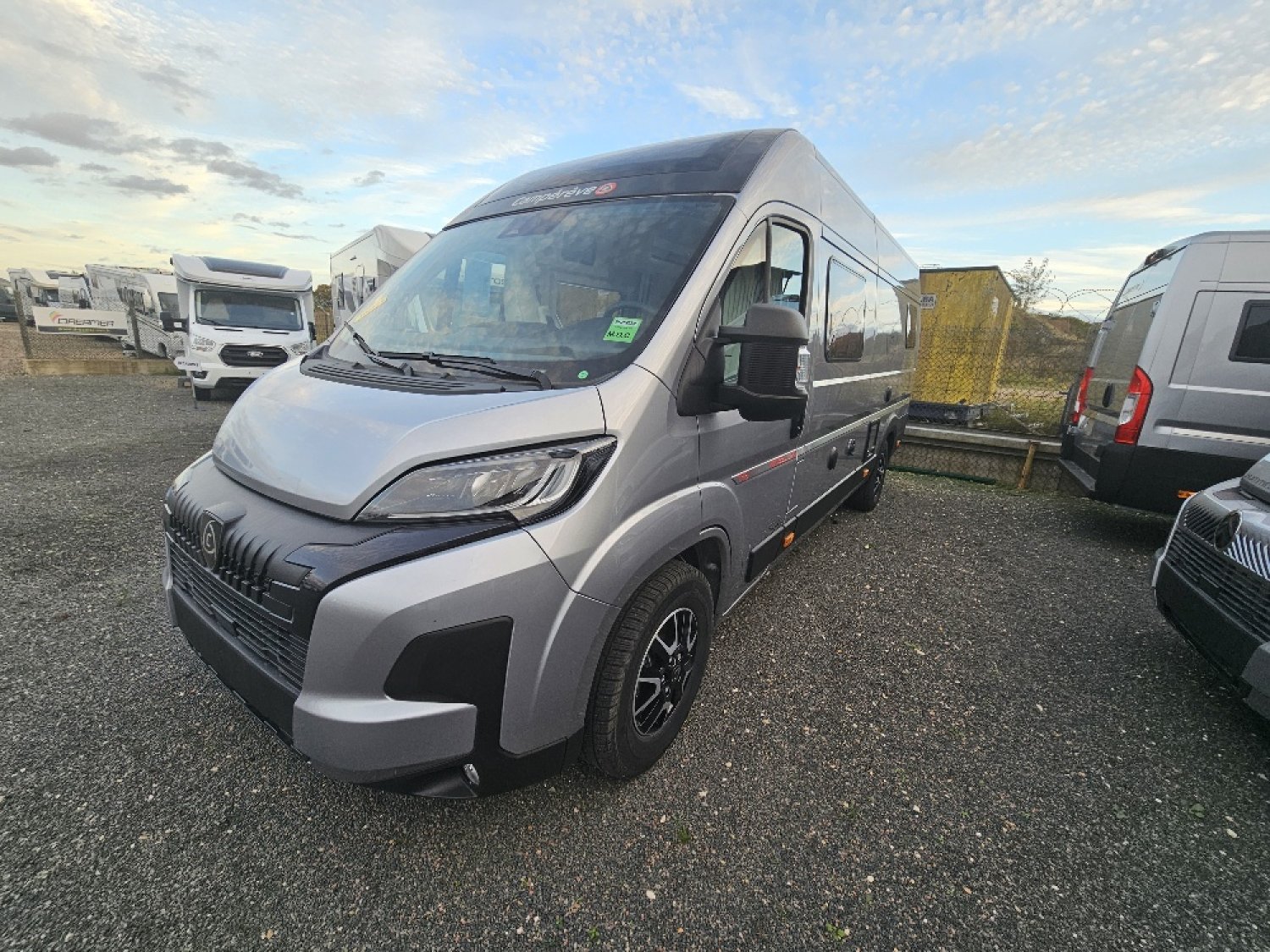 Magnifique fourgon aménagé comprenant un salon avant panoramique, un grand réfrigérateur, une salle d’eau DUO’SPACE avec paroi pivotante et des lits jumeaux. Le tout en série limitée sur-équipé.
