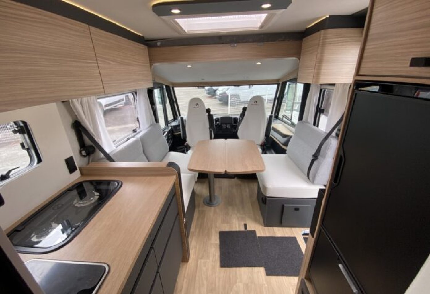 Laissez-vous séduire par ce superbe camping-car intégral offrant un agencement idéal pour le confort au quotidien :