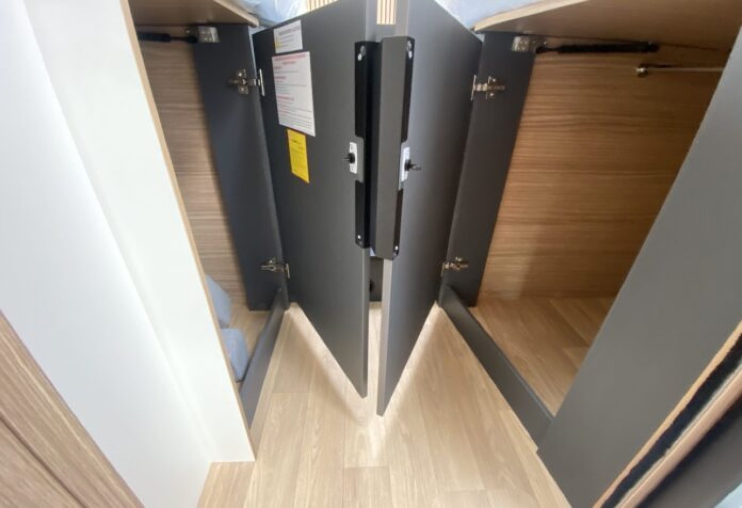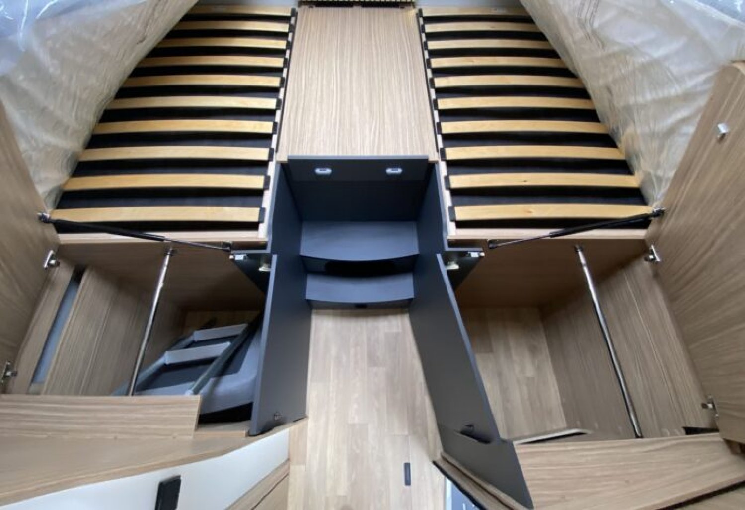 Lits jumeaux sur soute garage : espace nuit spacieux avec grand volume de rangement en dessous