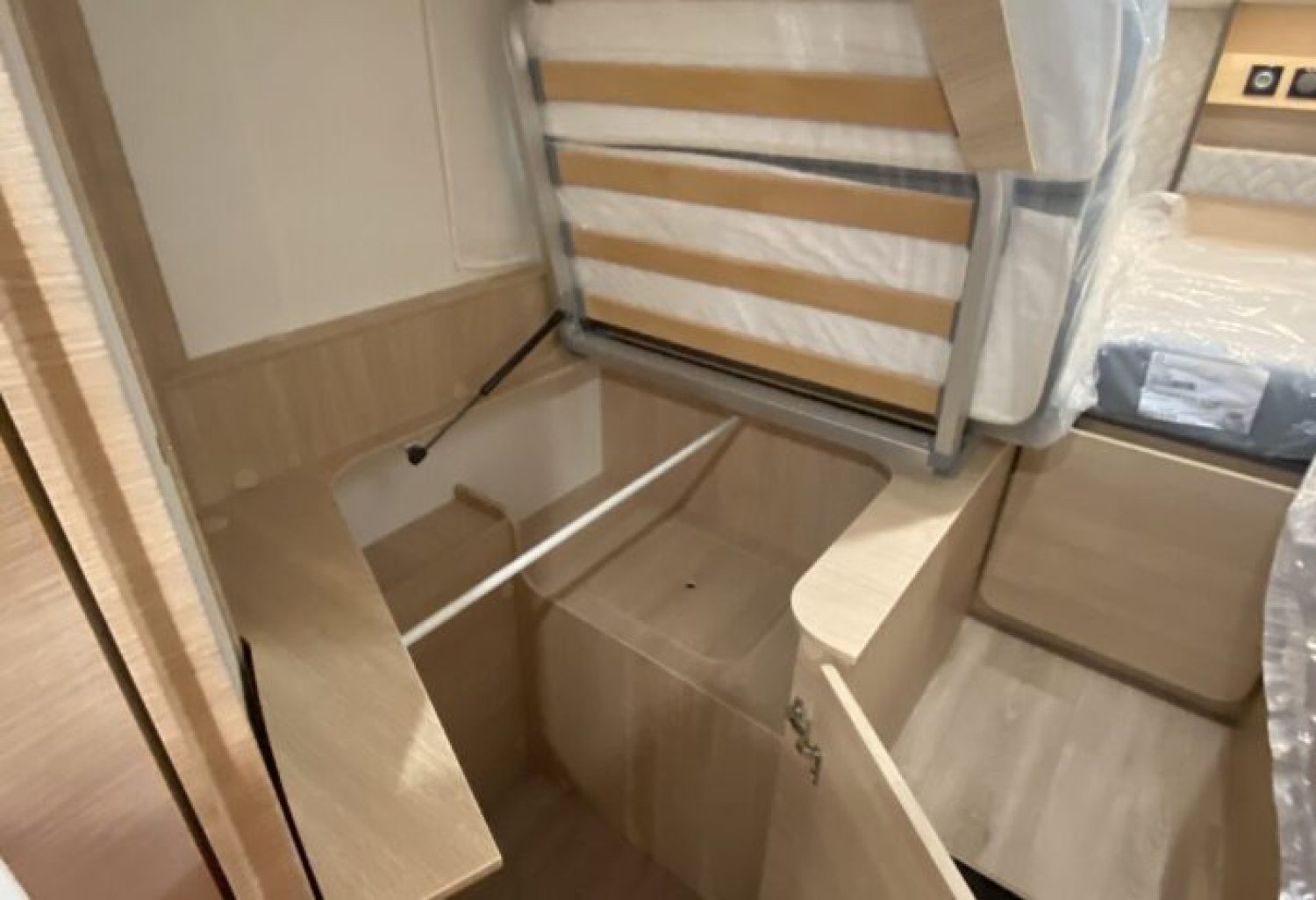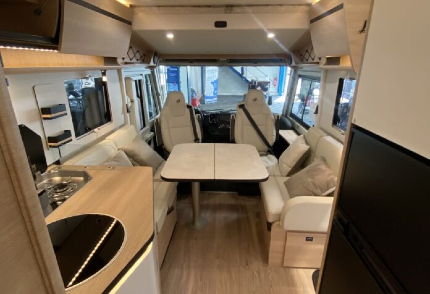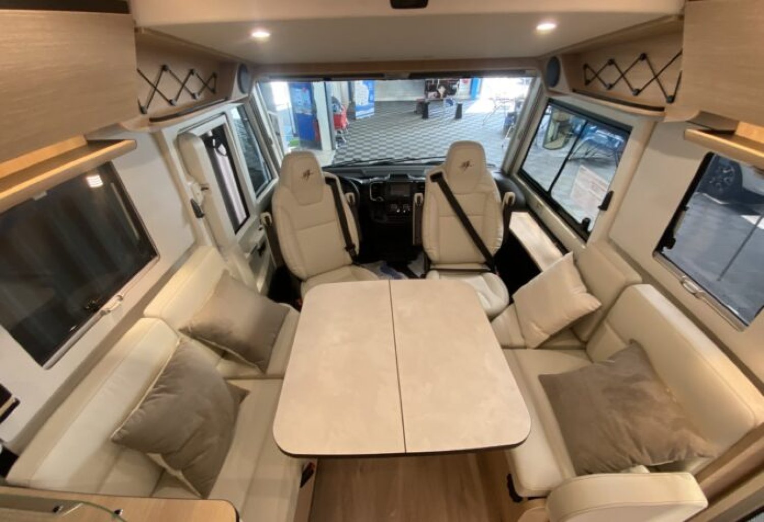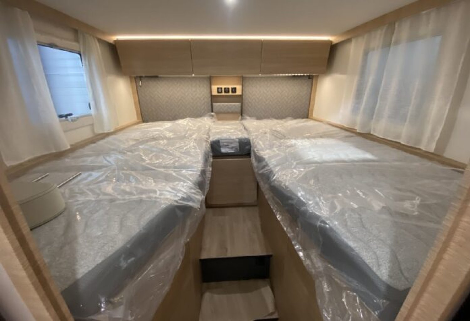 Intégral haut de gamme de marque française – 7,49 mètres – Lit jumeaux sur soute – Boîte automatique