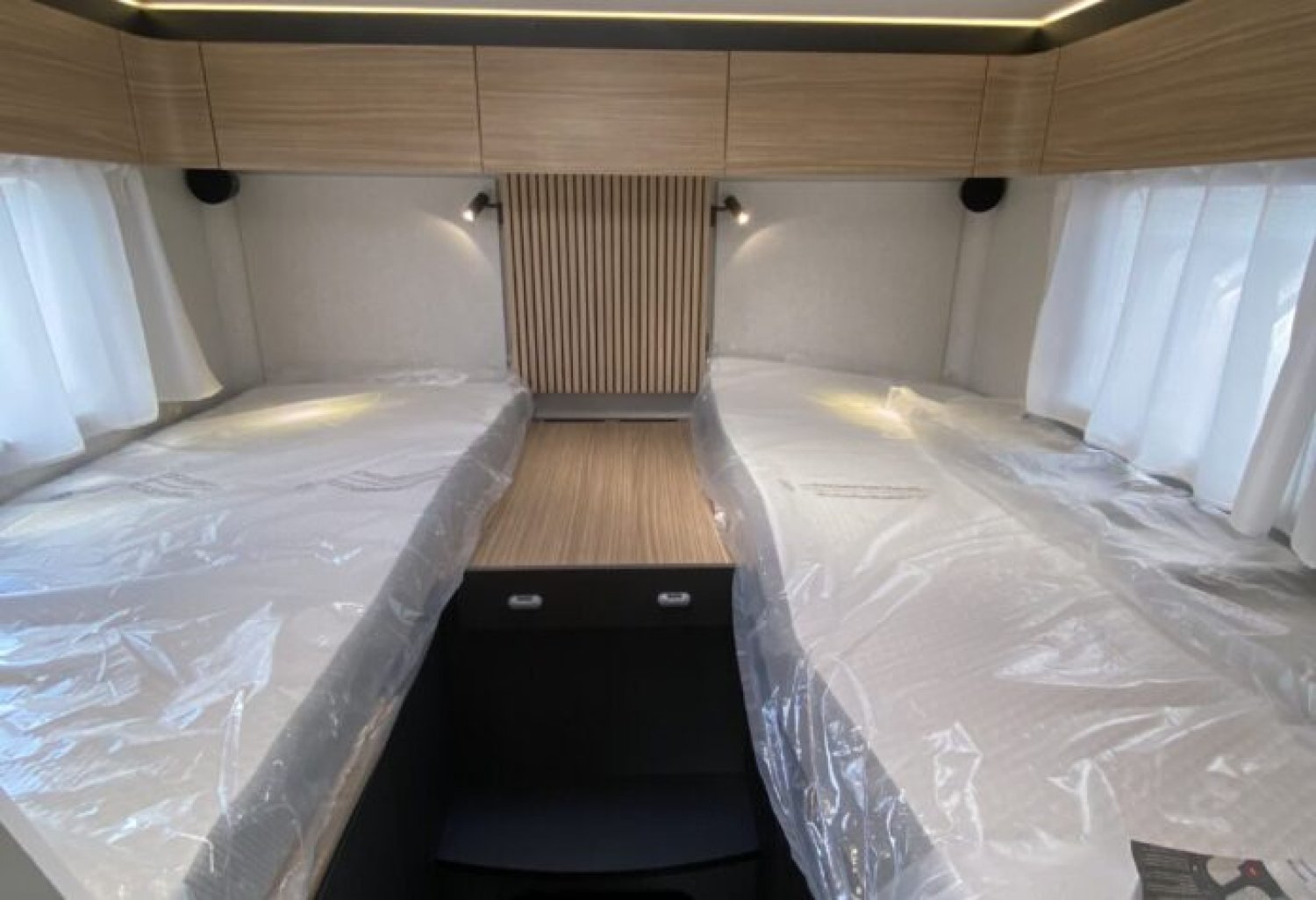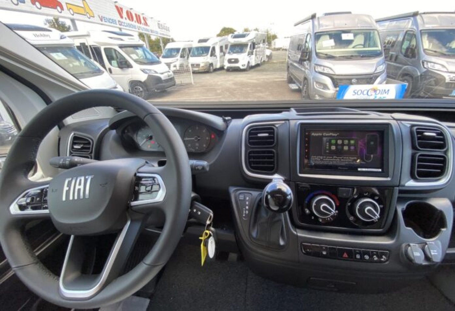 Ce camping-car allie puissance et confort grâce à sa motorisation 2,2 L - 140 ch avec boîte auto sur châssis Fiat 3,5 T. Son autonomie est renforcée par une batterie lithium 200 Ah, deux panneaux solaires et un chauffage hybride. L’équipement high-tech (autoradio 7", caméra de recul, Apple CarPlay/Android Auto) et son design moderne en font un compagnon idéal pour voyager tout confort.