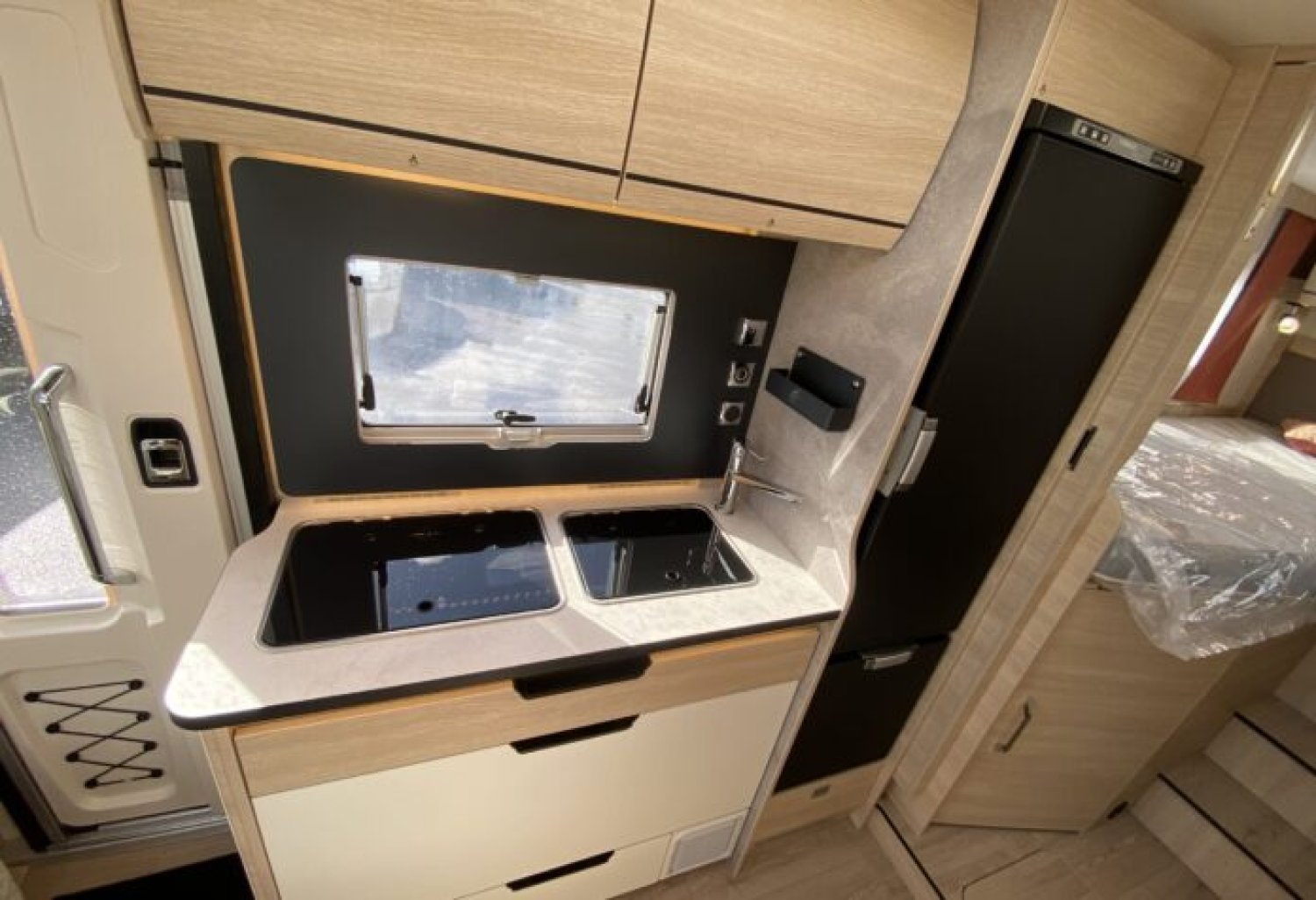 Profilé compact de chez Rapido en version 65 ans avec une dotation de premier niveau : Batterie lithium 100 Ah, panneau solaire 150 w et pack smart offert.