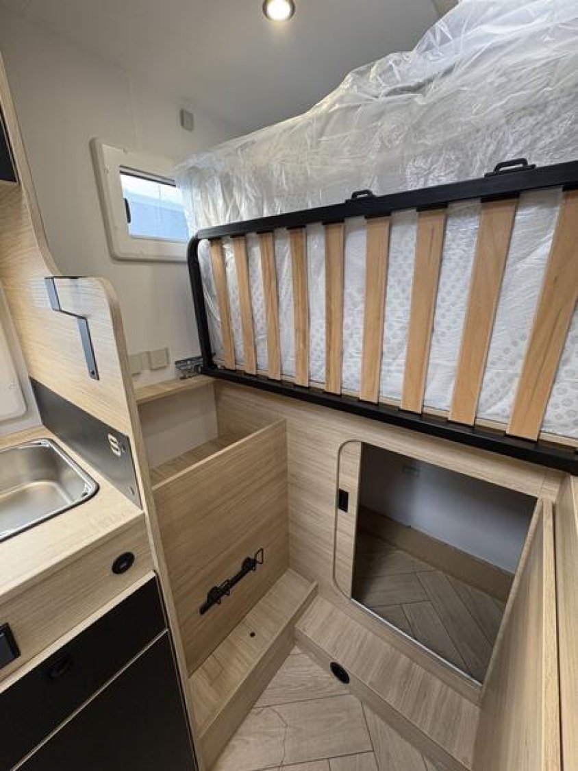 PAck Accessoires S : Store extérieur - auvent, panneau solaire 140W, moustiquaire de porte, stores intérieur cabine, complément couchage dinette, compléments couchage lits jumeaux*, kit pose 2ème batterie + Pack Connect : Caméra de recul, système multimédia, commandes au volant, antenne Radio DAB + Safety Ford : Alerte anti-collision, contrôle de franchissement de ligne, détecteur de pluie et de luminosité, capteur pression des pneus, reconnaissance des panneaux de limitation de vitesse + Look FORD : Jantes alliage noires 16'' + 2 batteries Gel 105 AH : 3780 €
