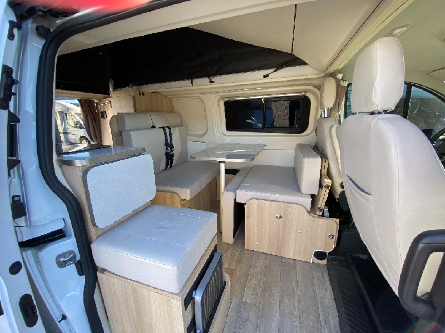 DREAM CAMPING CAR vous propose ce VAN DREAMER CAPLIFE SUR FORD TRANSIT CUSTOM avec toit relevable , il a tout d'un grand camping car dans une petite dimension , avec sont salon 4 places sa cuisine avec deux feux , sont frigo à compression de 51 l , ses toilettes de nombreux rangements , la douchette ar sont toit relevable et la dinette qui peu faire un couchage pour deux aussi.