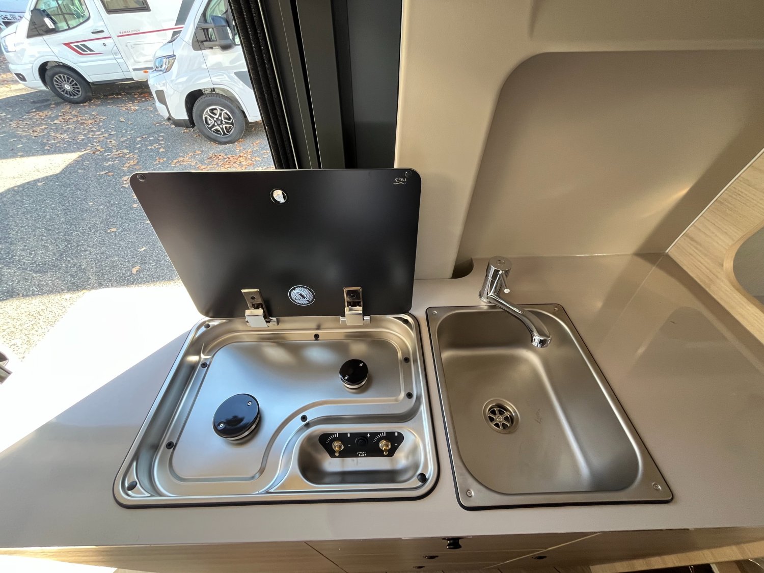 Fourgon aménagé moderne et compact (5.99 m). 4 places carte grise / 4 couchages. Motorisation 2.2 L – 140 ch sur porteur Citroën. Cuisine équipée, salle d’eau complète, chauffage, frigo 84 L, nombreux rangements. Design intérieur 2026, isolation renforcée, confort et maniabilité au top !