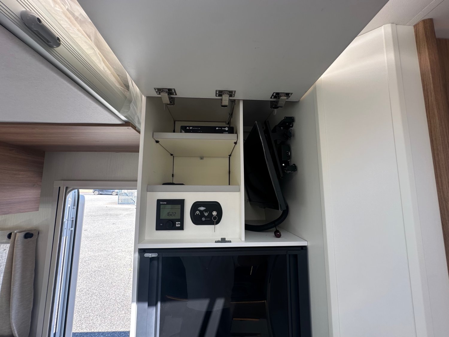 2 Panneaux solaires, Occultant pare brise, Musique d'ambience à l'arret dans le véhicule, Tirroir bas de caisse, Marche pied électrique, Moustiquaire de porte, Grand frigo / Congélateur, Store extérieur, Station multimédia / Caméra de recul, Antenne sat auto, 2 Télévisions, Jantes alu 16"