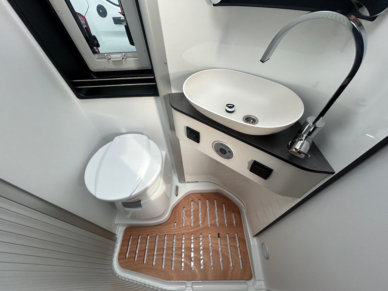 Le French édition est un modèle spécial destiné au marché français équipé de série : table à rallonge, baie cabinet de toilette, caillebotis en douche, sellerie spécial french édition, sérigraphie extérieur spécial french édition.