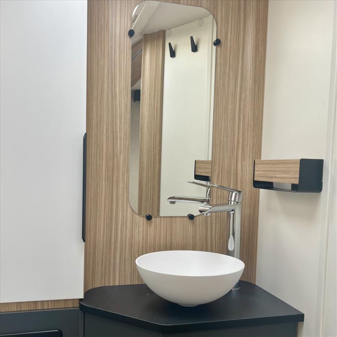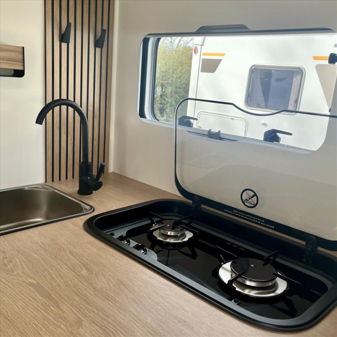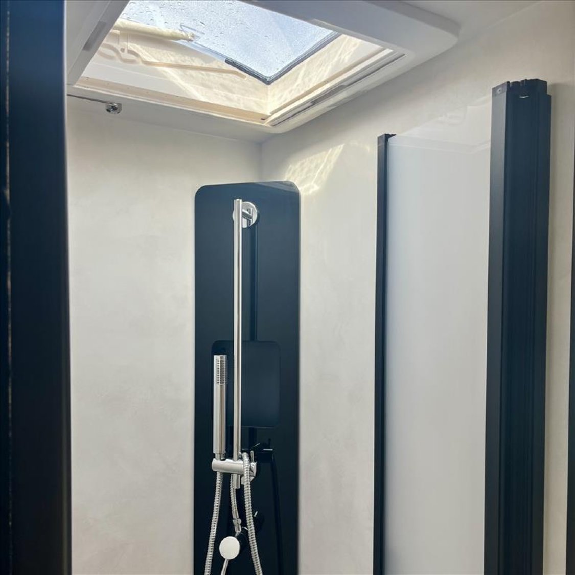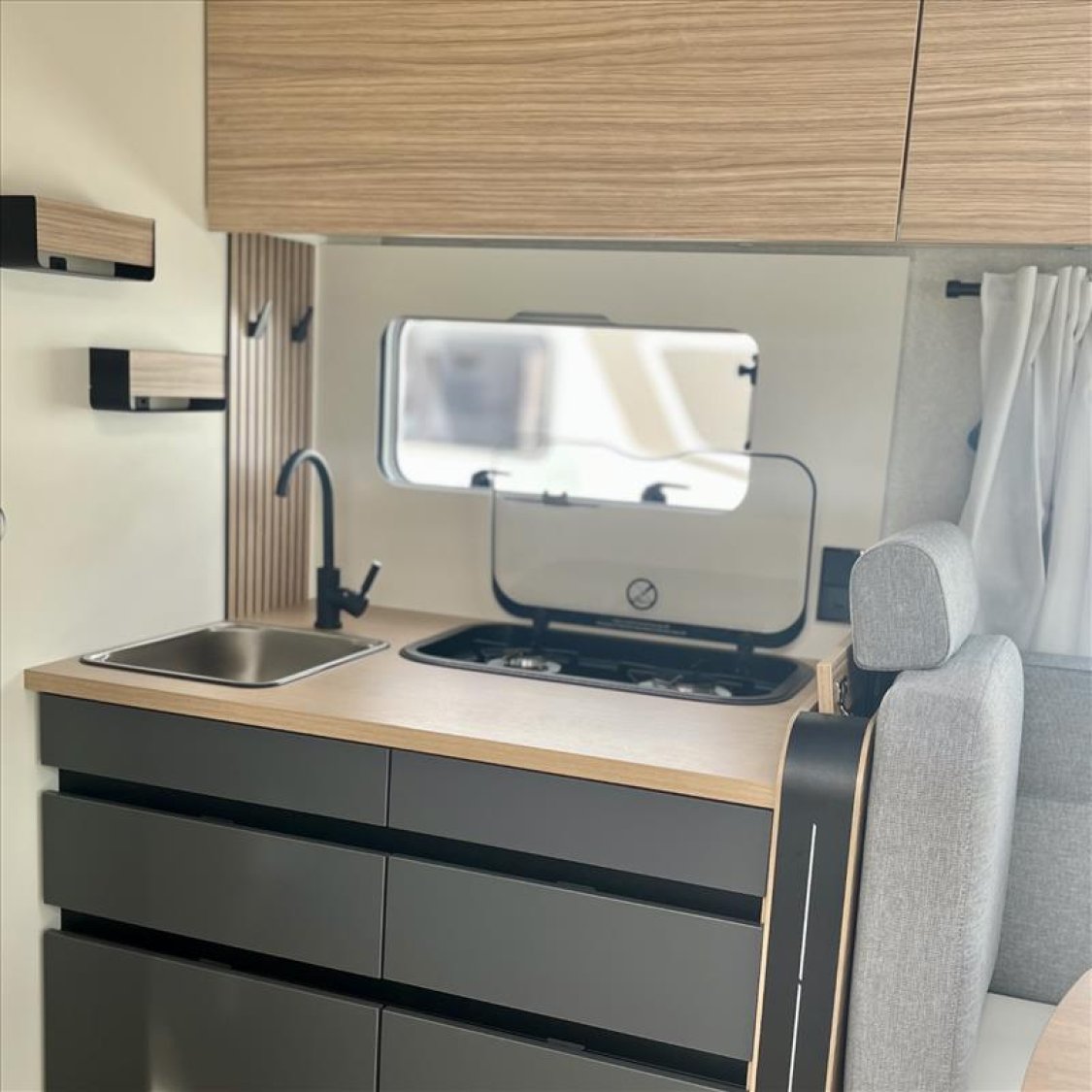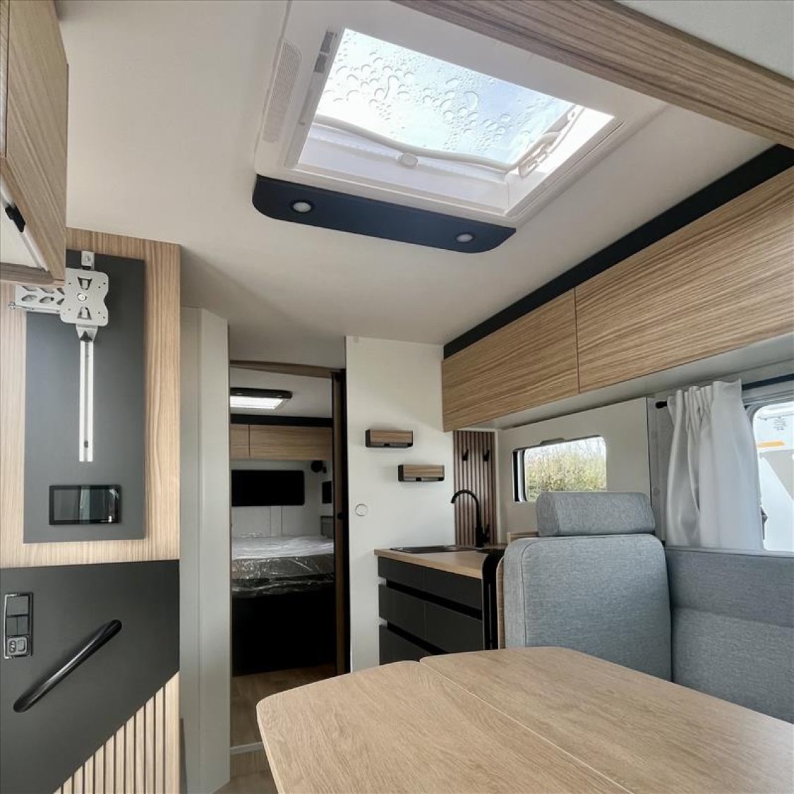 Autoradio DAB 9'' DAB GPS, Caillebotis dans la douche, Caméra de recul, Douchette exterieure, Eclairage dans la penderie et en soute, Porte-serviette repliable, Poubelle intégrée, Prise 230V en soute, Rail arrimage dans la soute, Tiroir de bas de caisse, TRUMA COMBI DIESEL 6