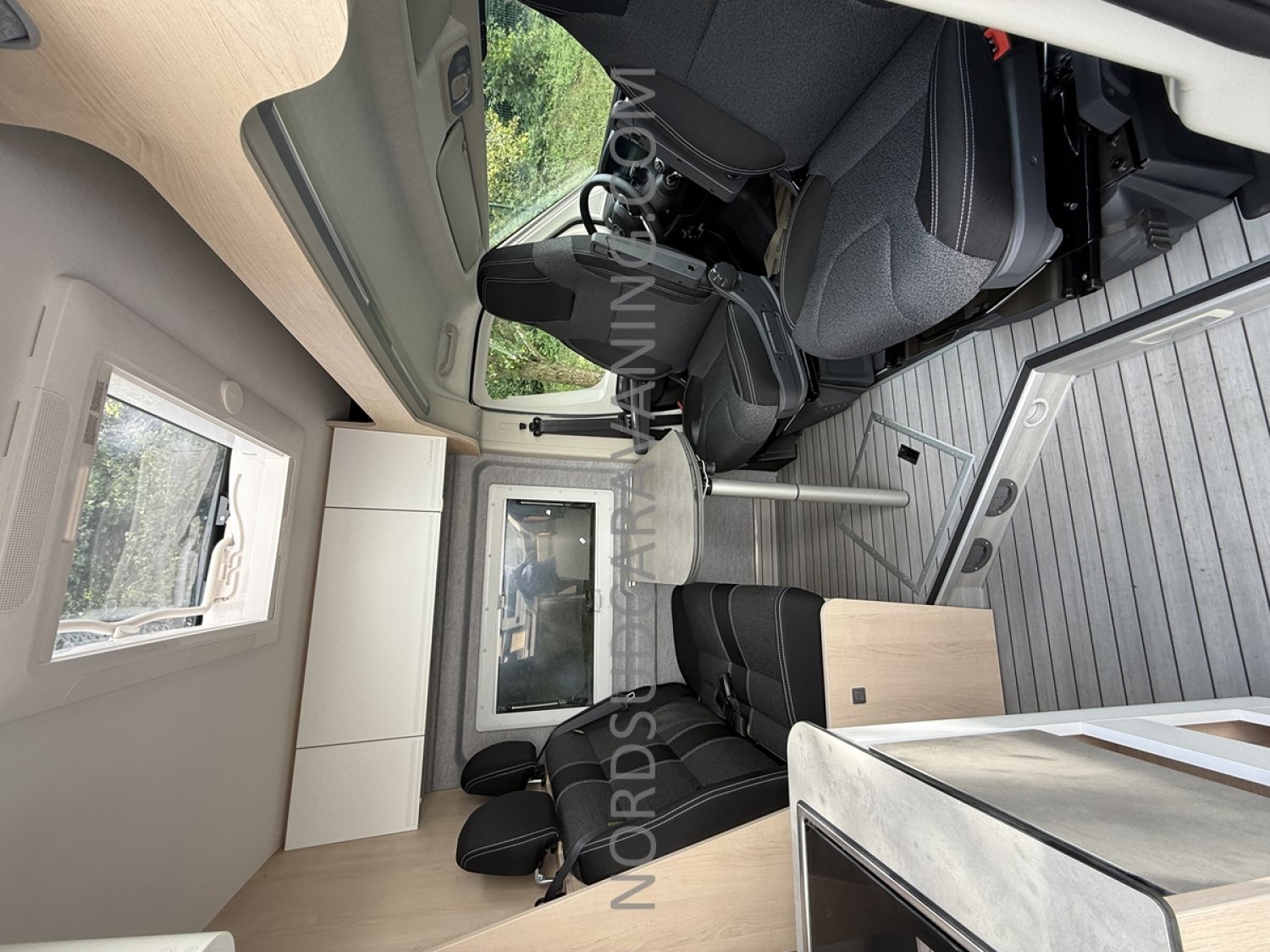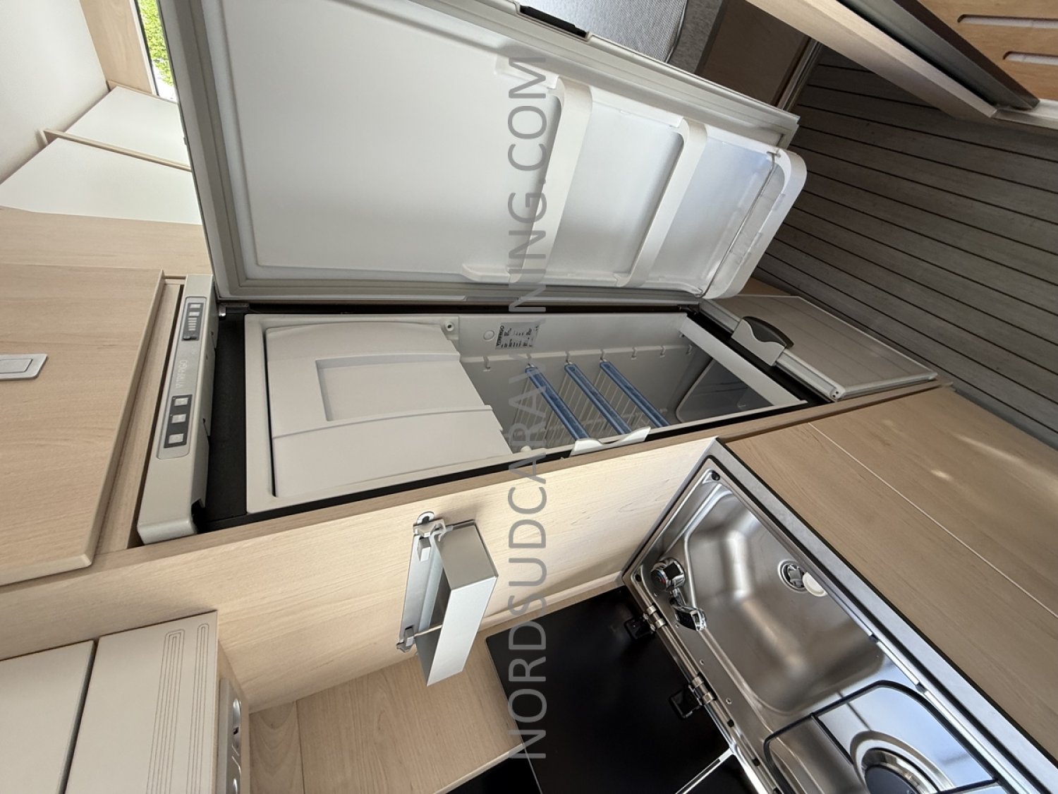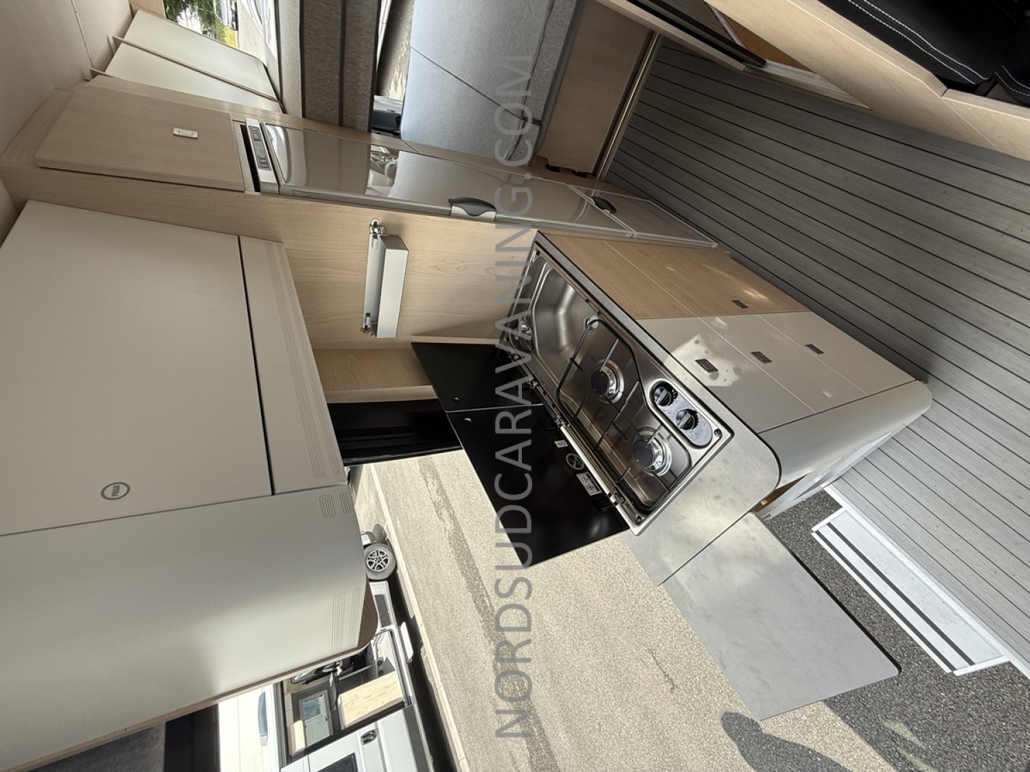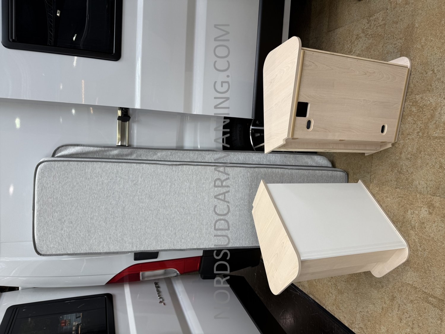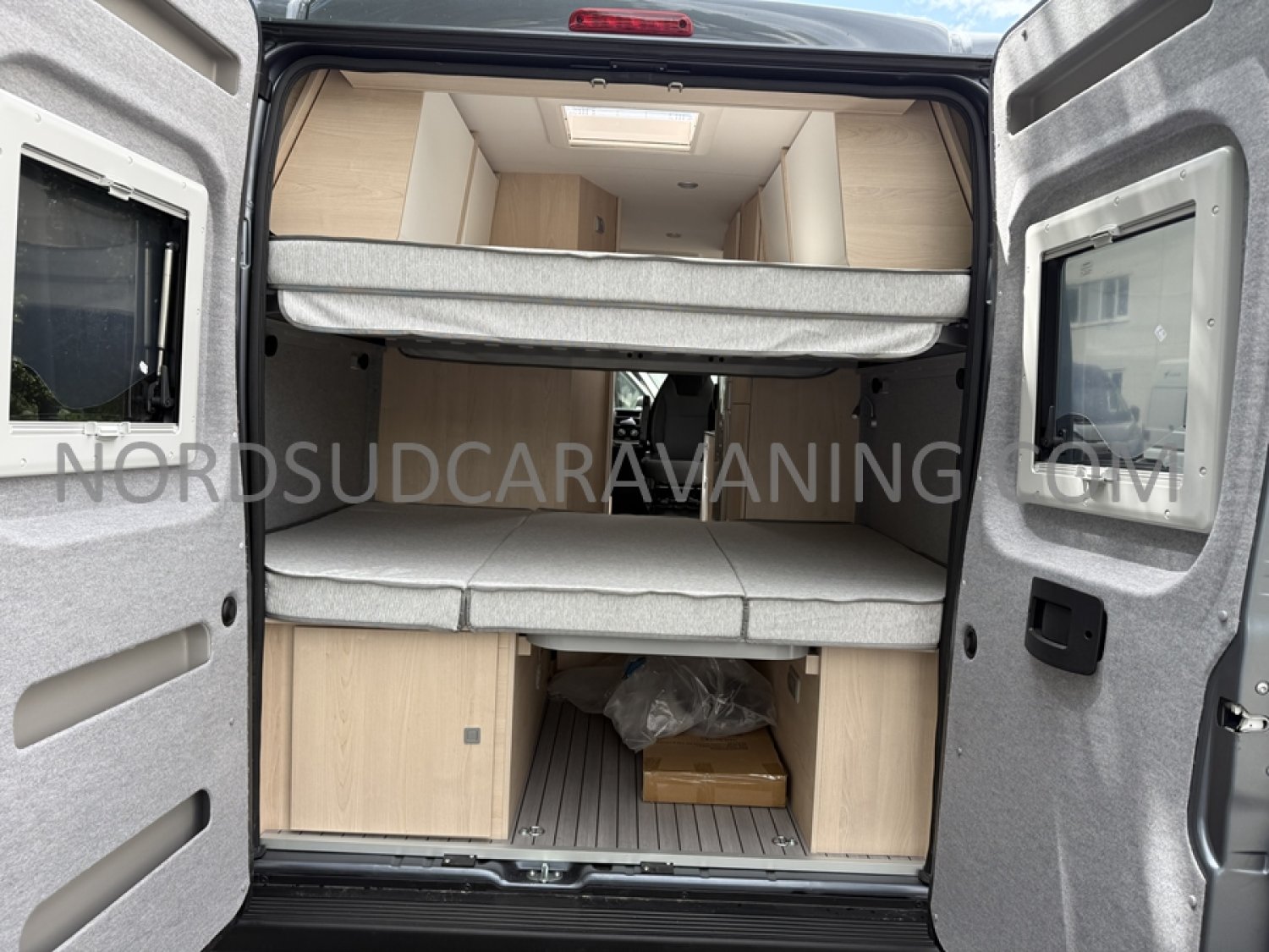 Ce magnifique fourgon sur Citroën Jumper est équipé d’une dinette spacieuse et lumineuse de 4 personnes, parfait pour jouer et se réjouir ensemble. Sa cuisine latérale fonctionnelle dotée d’un réchaud 2 feux, d’un évier inox, de couvercles en verre, d’un grand réfrigérateur et d’un plan de travail haute résistance avec une rallonge qui raviront les cuisinières et cuisiniers. En face, une salle d’eau avec WC à cassette, lavabo, miroir, douchette et caillebotis. Grâce à son intérieur modulable, vous y retrouverez des lits superposés avec le lit supérieur amovible, idéal pour partir avec vos enfants ou vos petits-enfants. Les atouts d’un lit transversal dans un fourgon astucieux de 6m, idéal pour des escapades spontanées. Emportez ce dont vous avez besoin avec ses nombreux rangements astucieux.
