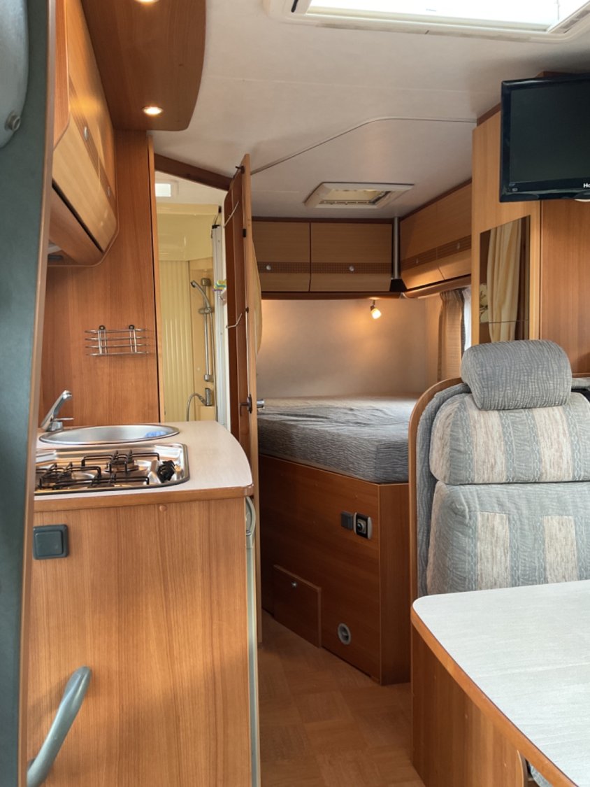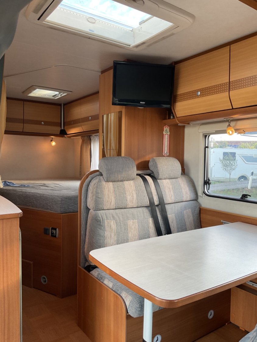 CELLULE: Réfrigérateur trimixte, Chauffage & chauffe-eau Boiler Truma combiné, Lanterneaux, Cuisine: Plaque Cuisson 3 feux gaz, Marche-pied électrique,Télévision, éclairage Led., Porte-moustiquaire, Alarme Gaz/Monoxyde de C.