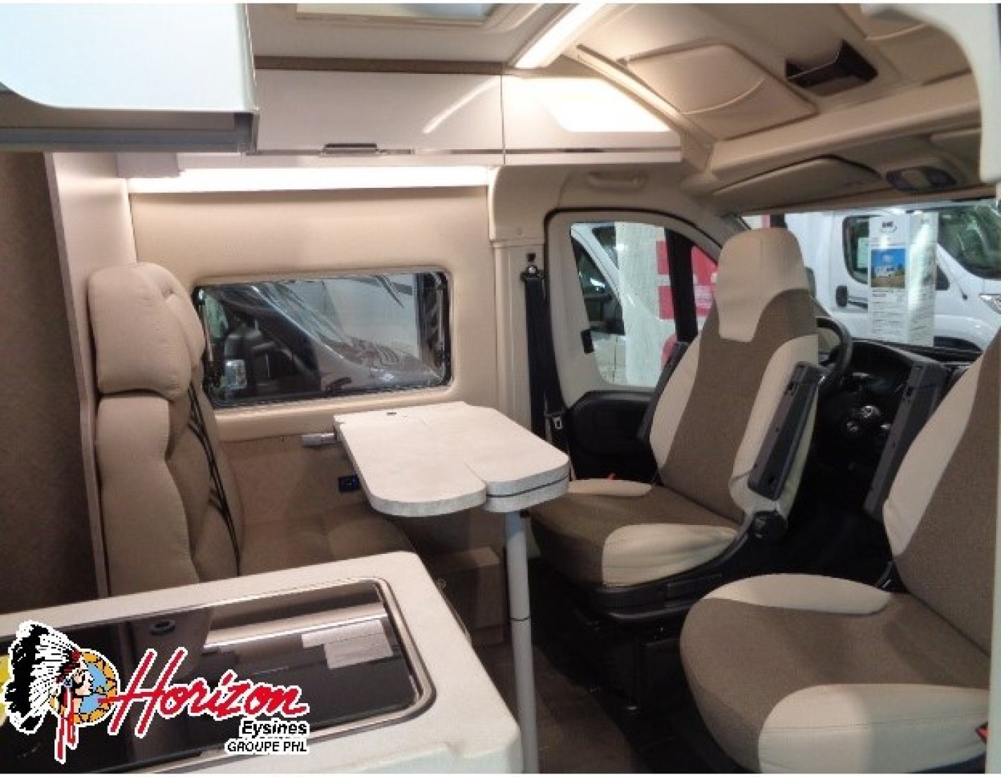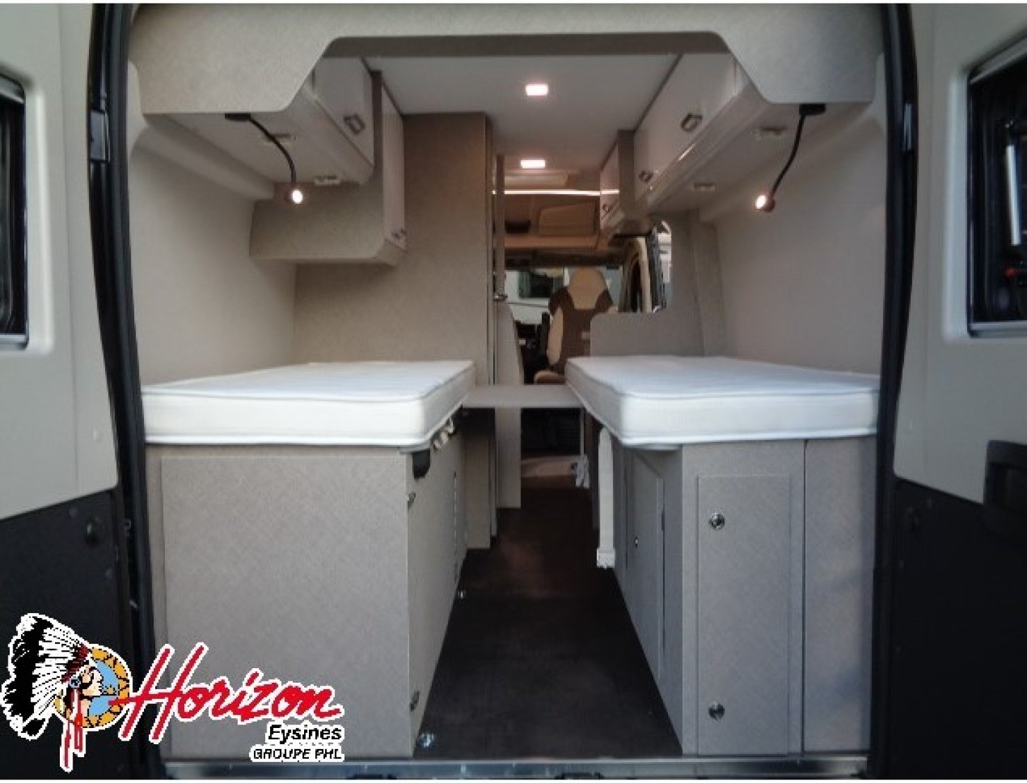 Le Karmann Davis 600 Lifestyle est un fourgon aménager de 5 mètres 99. Il est doté d’un beau salon pouvant accueillir 4 personnes, une cuisine qui est bien équipée, une salle d’eau modulable avec la possibilité de replier le lavabo et enfin ses lits jumeaux qui peuvent se jumeler pour en faire un grand lit arrière.
