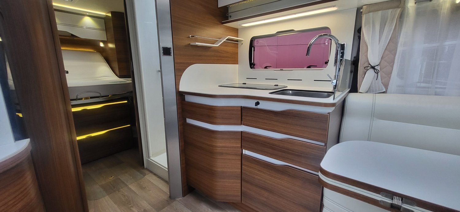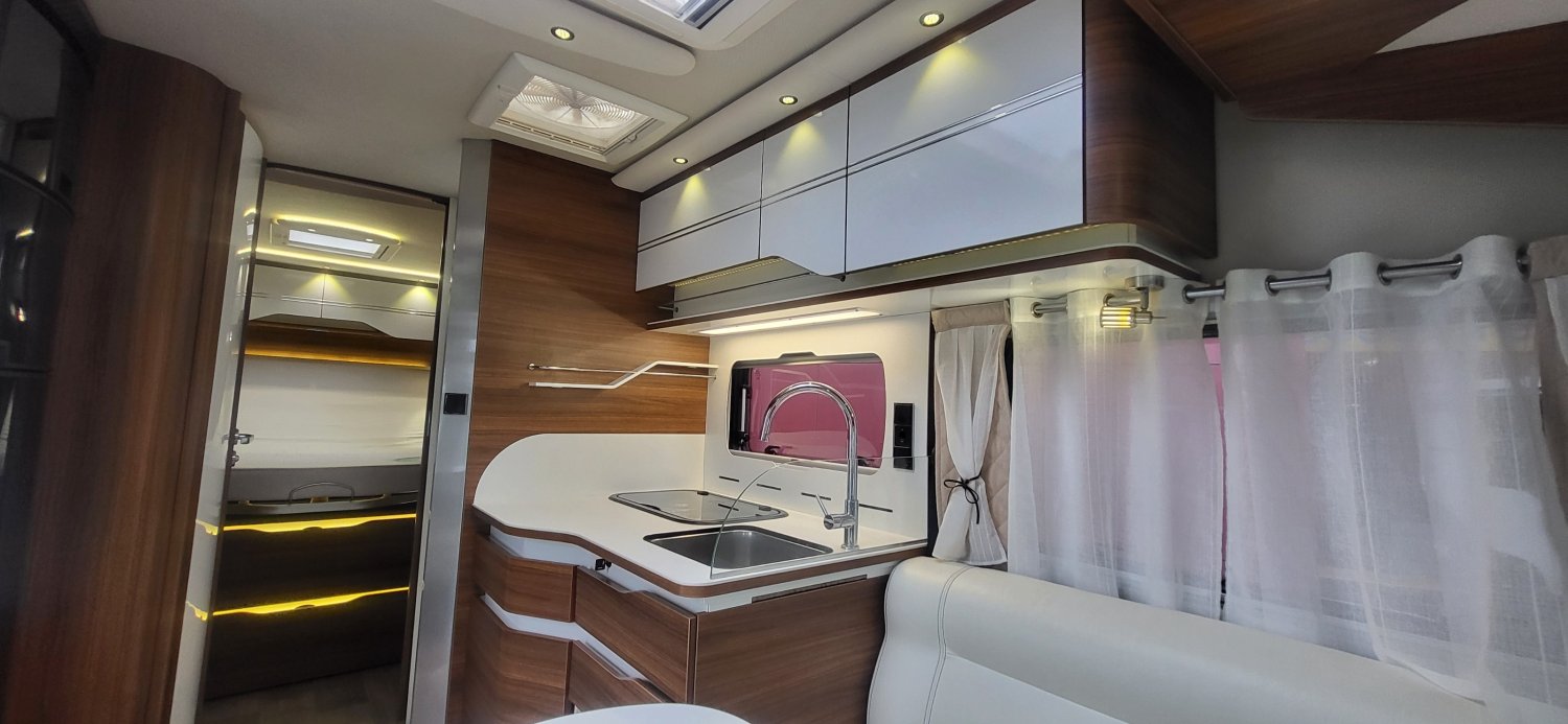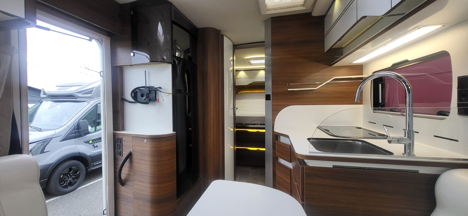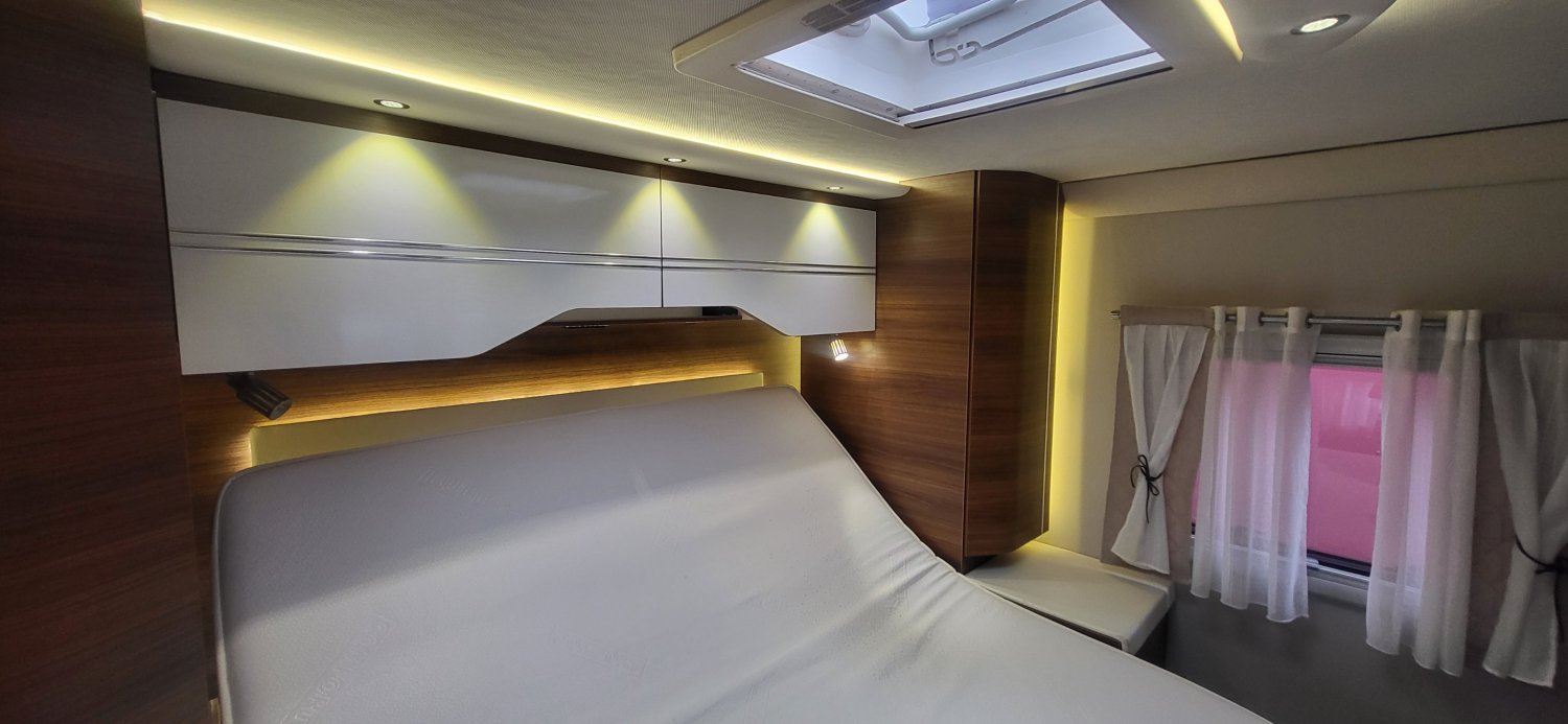 Camping car haut de gamme le voyageur en lit central disponible à la vente.