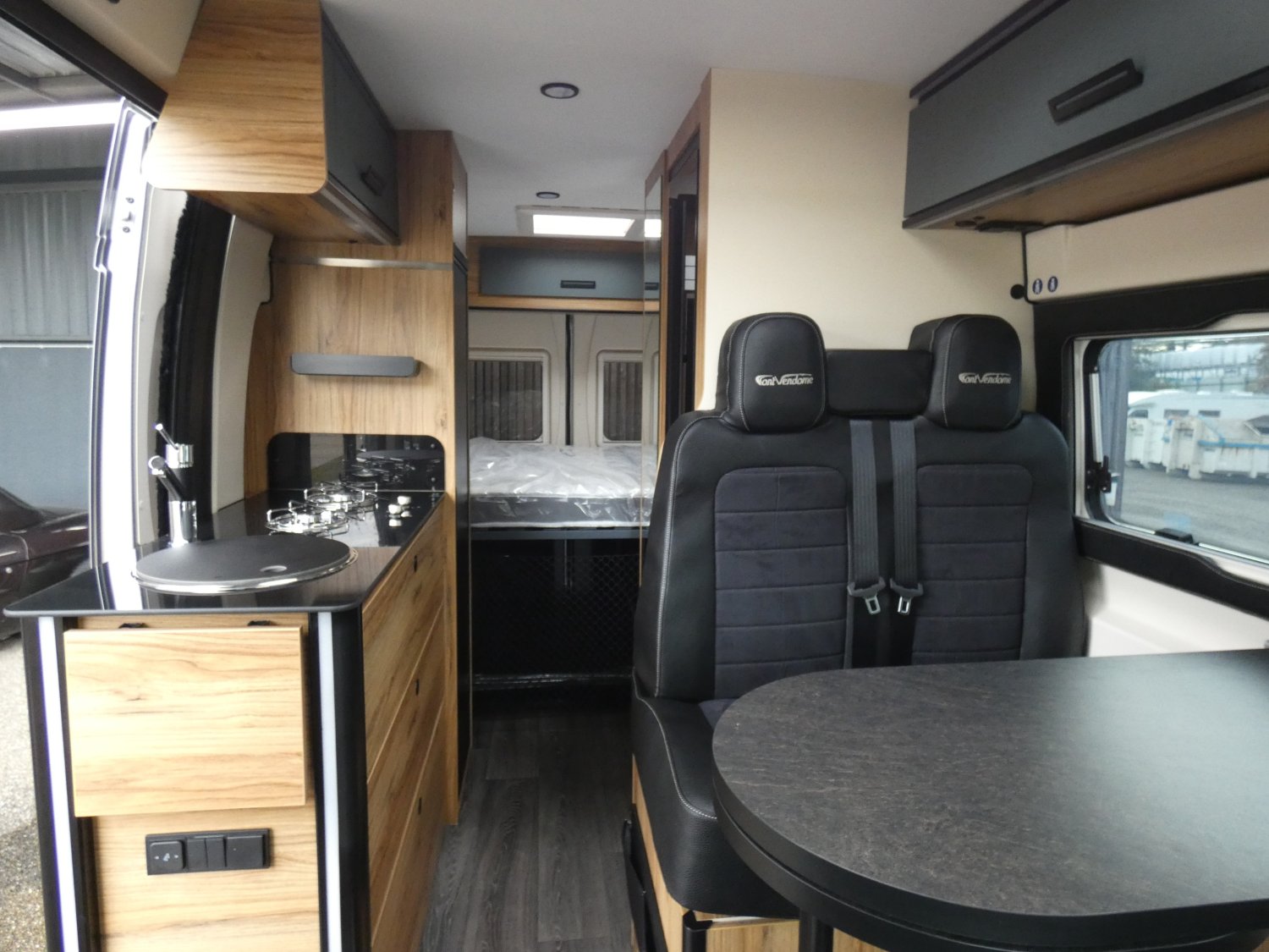 Venez découvrir au redécouvrir le fourgon aménagé FONT VENDÔME LEADER CAMP. En amélioration constante depuis sa sortie en 2013, avec, sur cette version 2026, la paroi de douche pivotante, la batterie lithium 120 A, le grand réfrigérateur à compression, le store extérieur ou encore le panneau solaire de série. Ajouter à cela un design intérieur contemporain et vous aurez l'un des meilleurs fourgon de 5.99 m du marché.