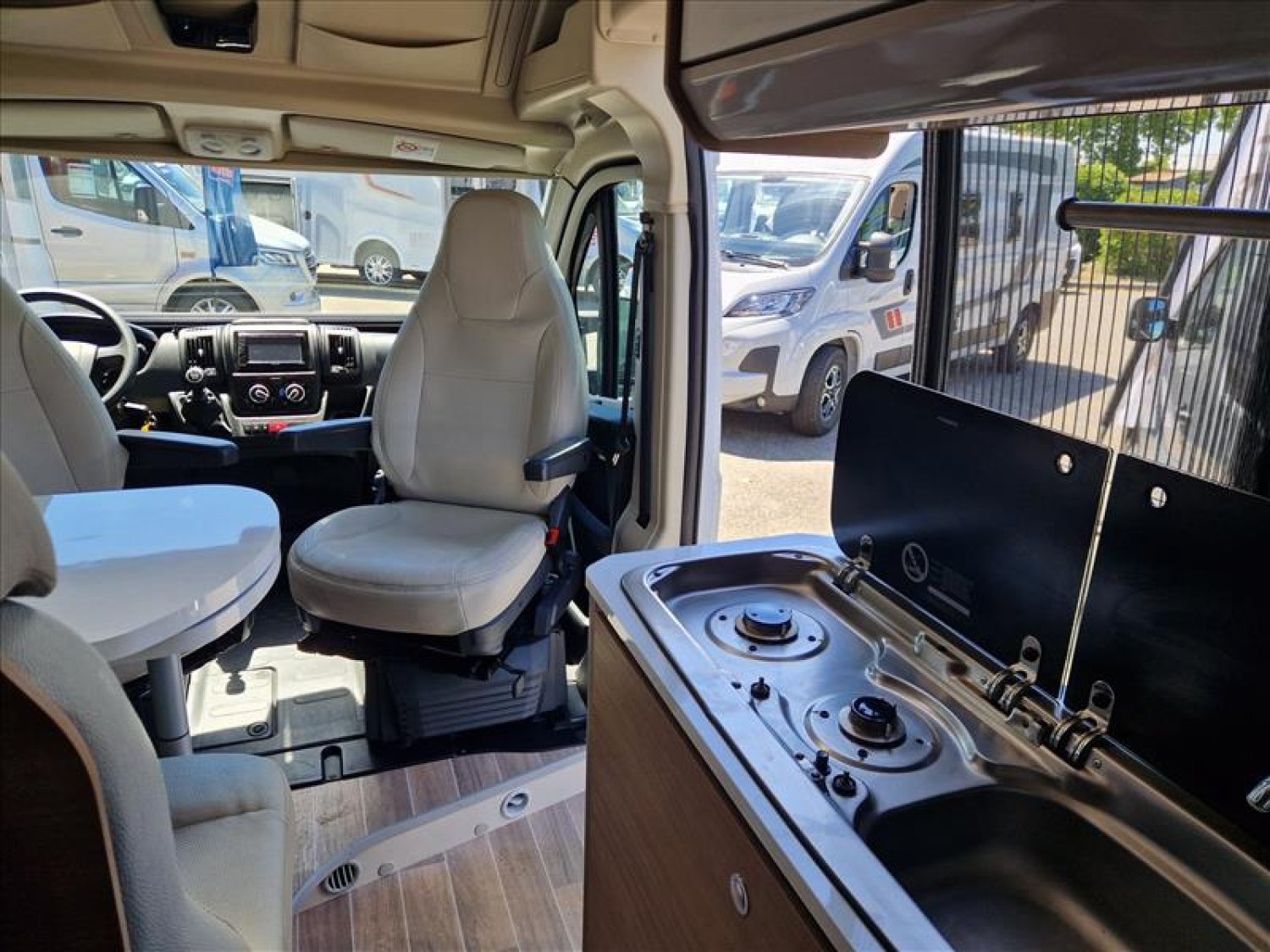 Fourgon de marque leader avec lit transversal arrière, état proche du neuf, très bien équipé.
