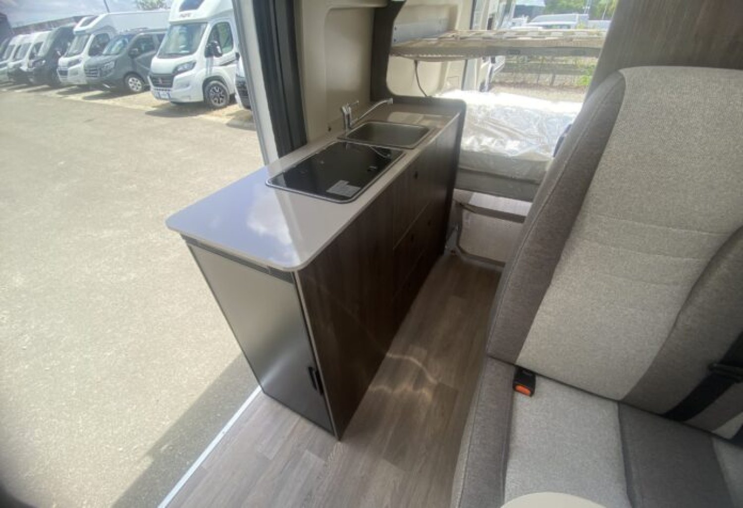 Réfrigérateur à compression 84L double ouverture - Evier et réchaud 2 feux encastrés - Fenêtres double vitrage - Fenêtre dans la salle de bain - Chauffe-eau / Chauffage Truma diesel avec kit altitude - Châssis 3T500
