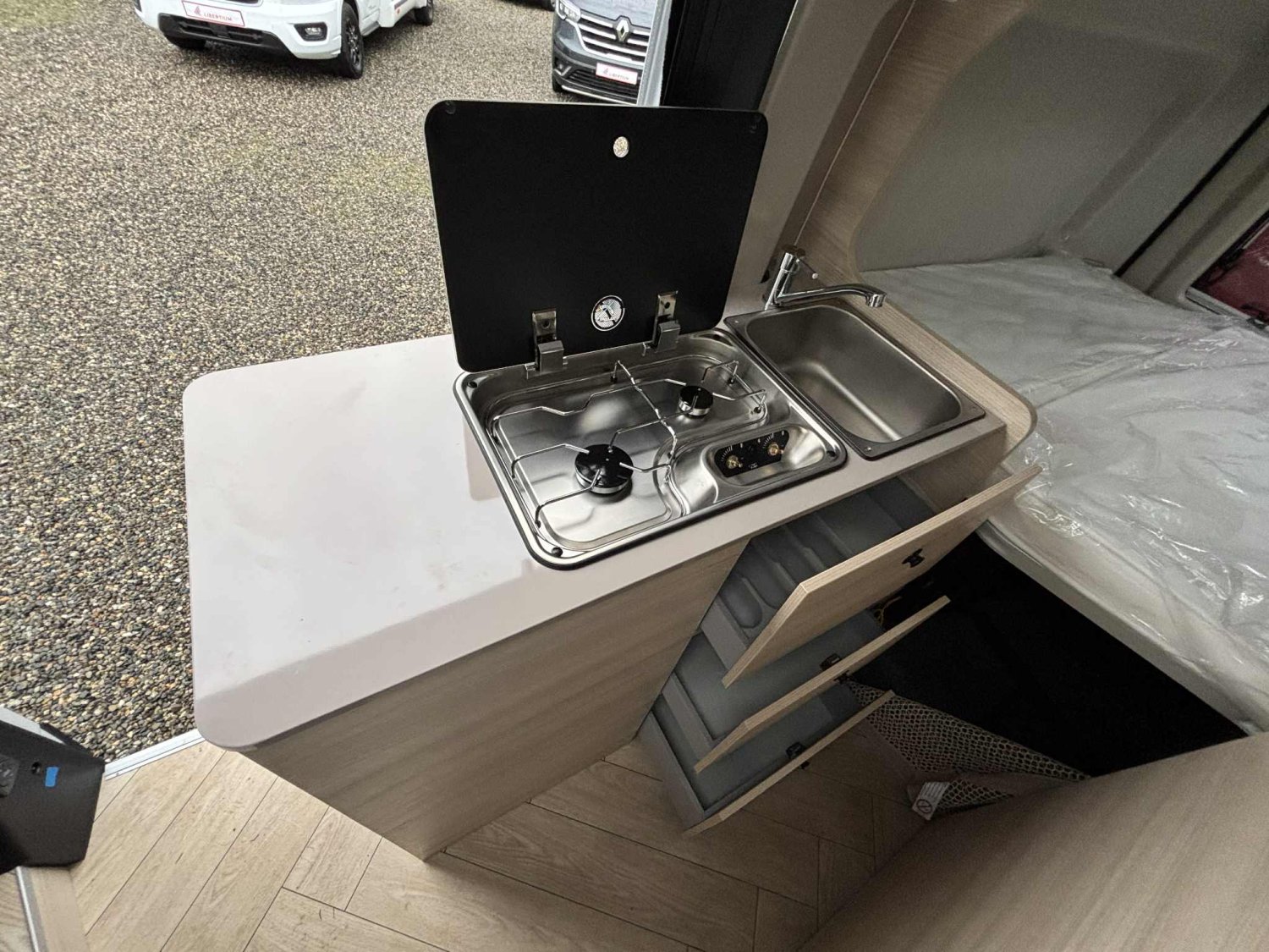 Ce fourgon aménagé est idéal pour aller où on veut, quand on veut, en toute discrétion, y compris dans la vie de tous les jours : Pour les escapades, il a tout : coin cuisine, salon, salle de bains et lit 2 places : 5,41m de plaisir à deux…Pour tous les jours, le lit arrière se relève pour gagner de la place et le salon se transforme en banquette pourvue de 2 ceintures de sécurité pour voyager à 4.