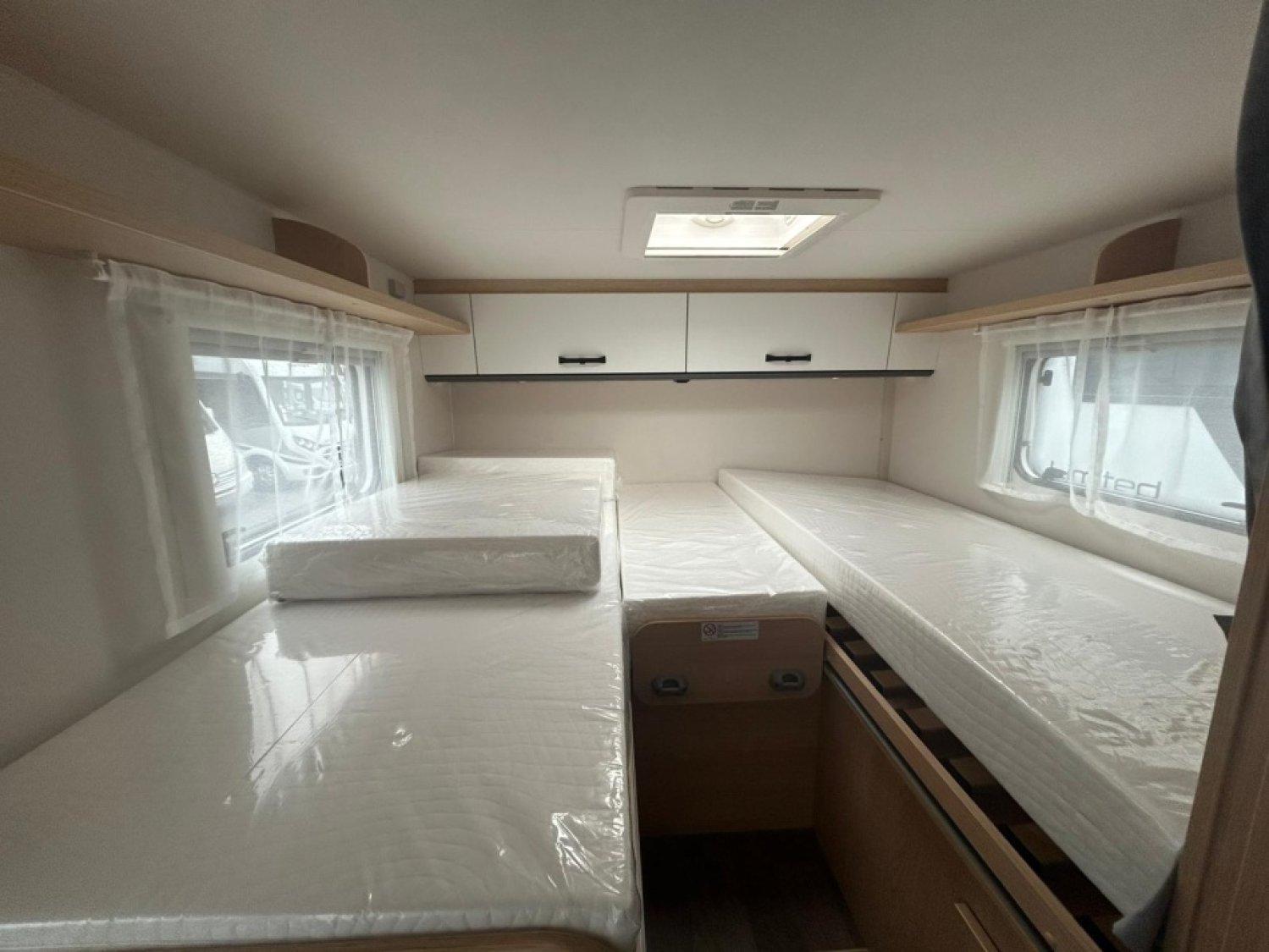 Le camping-car idéal pour les familles avec 4 couchages. Le lit jumeau se transforme en lit XXL et le lit pavillon manuel conserve un gabarit étroit tout en libérant la hauteur sous plafond et l’accès à la porte d’entrée. La dînette convertible permet deux lits superposés à l’avant. La salle d’eau Vario avec paroi pivotante optimise l’espace et le confort.