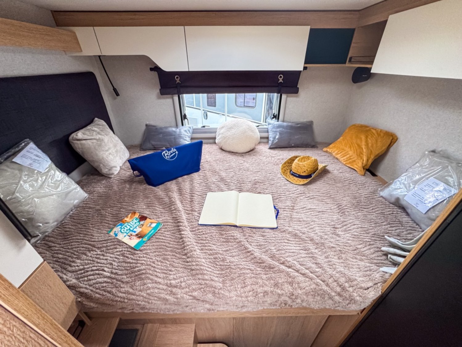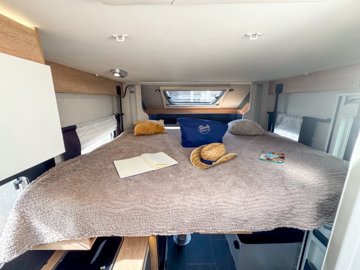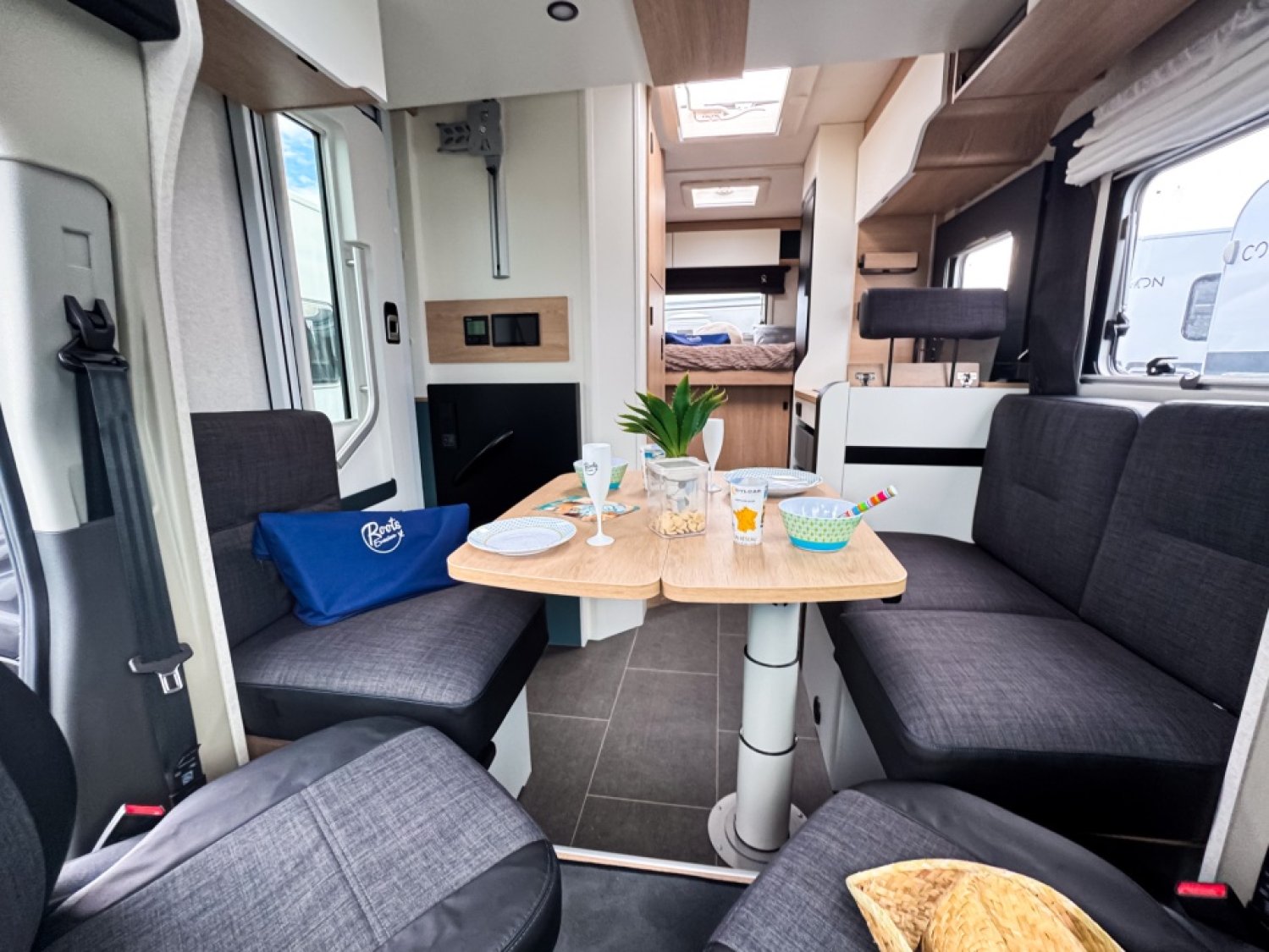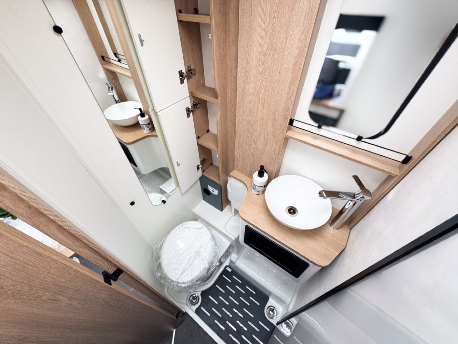 PACK GRAND CONFORT : ECLAIRAGE, RAILS ET PRISE 230 V EN SOUTE, DOUCHETTE EAU FROIDE/CHAUDE ENSOUTE, STORE BANNE, CAILLEBOTIS DANS LA DOUCHE, DETENDEUR/INVERSEUR AUTOMATIQUE - CRASH SENSORTRUMA®, RESERVOIR DES EAUX USEES HORS-GEL, POUBELLE INTEGREE ET PORTE-SERVIETTE REPLIABLE