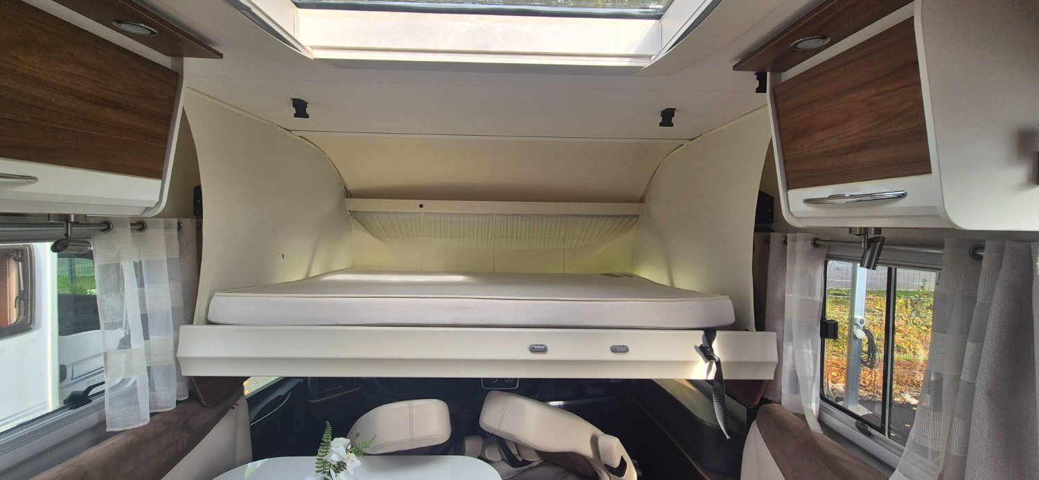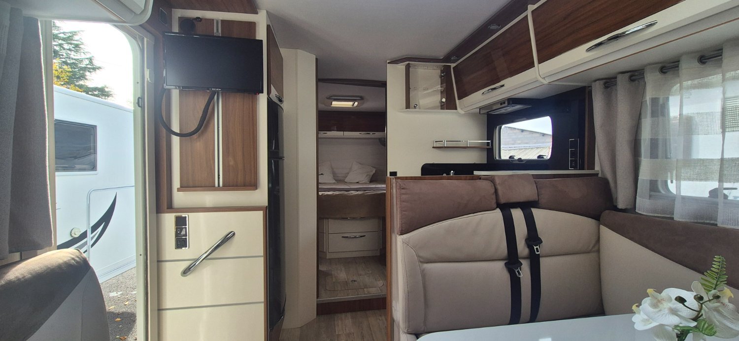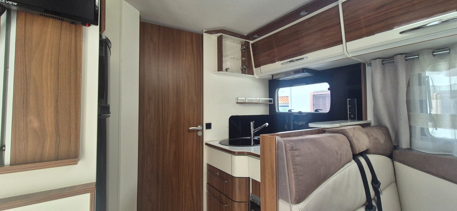PILOTE Intégral 4 couchages, Diesel - 2019 - 95 080 km - 130 CV, 59 900 €. Porteur : Fiat Ducato 2,3 l 130 ch L x l x h : 7.49 x 2.30 x 2.85 m PTAC/CU (kg) : 3500/545 PTRA 6000 kg Clim cabine : Oui Carrosserie : Polyester Cuisine : avec réchaud 3 feux - réfrigérateur 160 litres Couchage : Lit permanent arrière (190 x 140 cm), Lit de pavillon (190 x 135 cm) Toilette : WC à cassette Douche : Indépendante store exterieure 2 panneaux solaire 2 batteries 100 AH Convertisseur 500W Antenne satellite automatique TV HD Marche pied électrique moustiquaire de porte camera de recul poste multimédia suspension pneumatiques four a gaz véhicule révisés mécanique et céllule garantie commerciale 12 mois