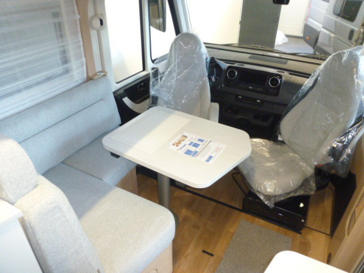 Cuisine en long, Douche à vario, Grande soute, lit jumeaux, lit pavillon, Salon avant sièges pivotants, Salon en L, WC Cassette.