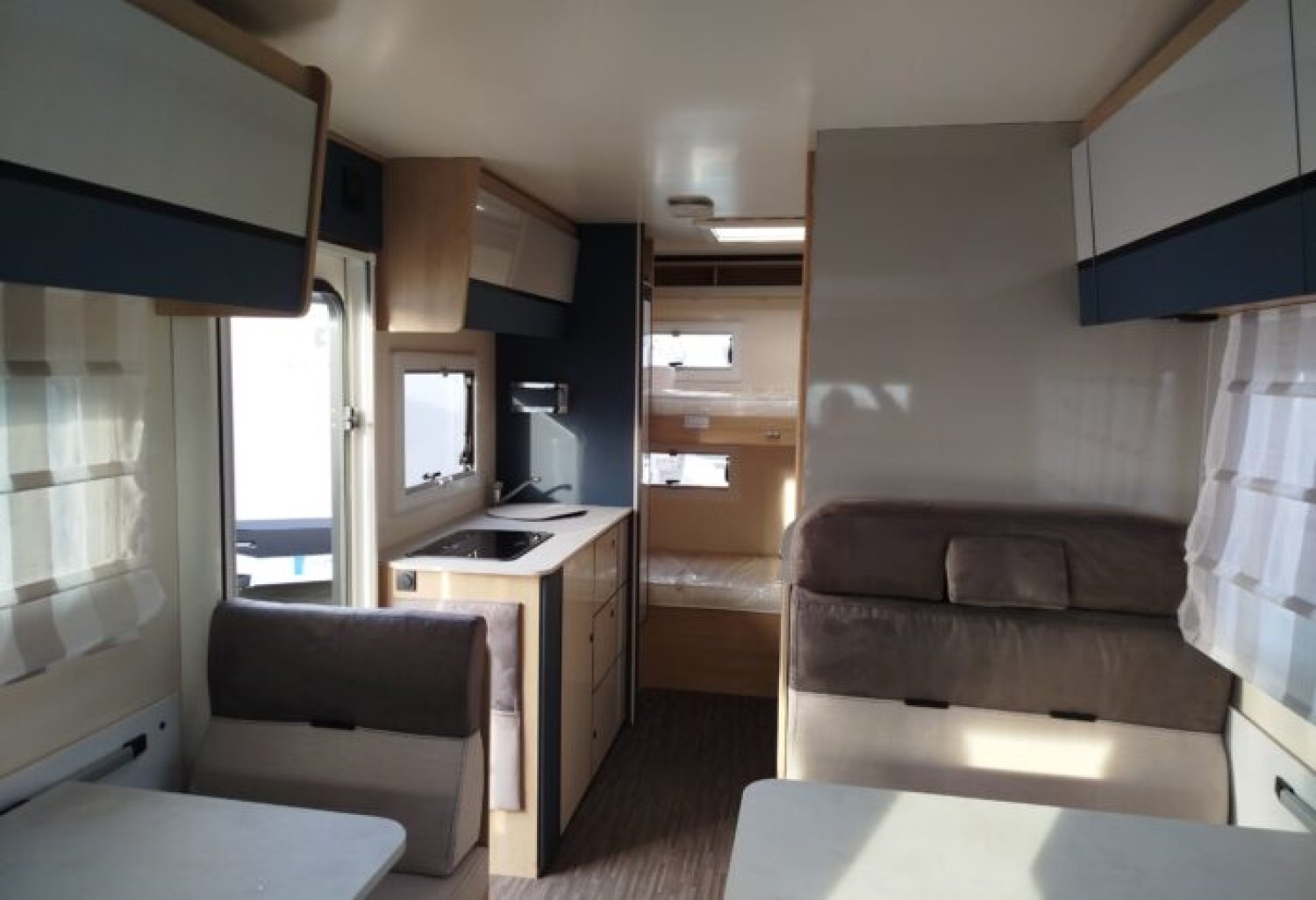 Pack ford : motorisation 165 CV, Store extérieur 4,5 mètres, feux diurnes, boites à gants avec serrure, habillage intérieur et tableau de bord finition « tren », pare chocs et bas de caisses latérales peints couleur carrosserie, porte Xl avec 2 points fermeture, fenêtre et fermeture centralisée, panneau solaire 200W avec régulateur MPPT, panneau de commande CP plus, skyroof, couvercle évier, housses de sièges cabine, store occultants plissées cabine prise gaz externe + douchette extérieure