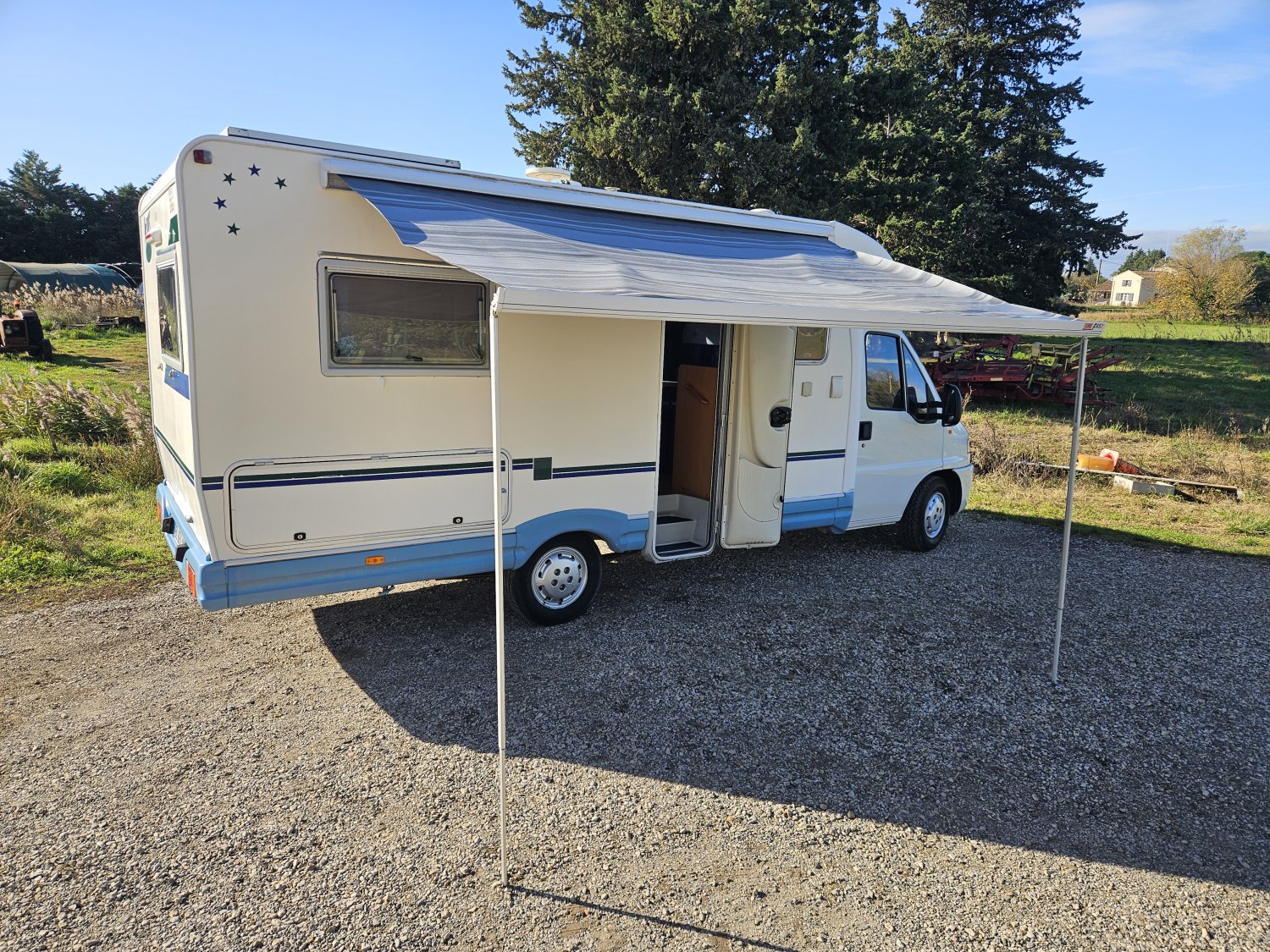 STORE EXTERIEUR 3.5M, GAZINIERE 3 FEUX, REFRIGERATEUR TRI MIX, CHAUFFAGE GAZ TRUMATIC, CHAUFFE-EAU GAZ
