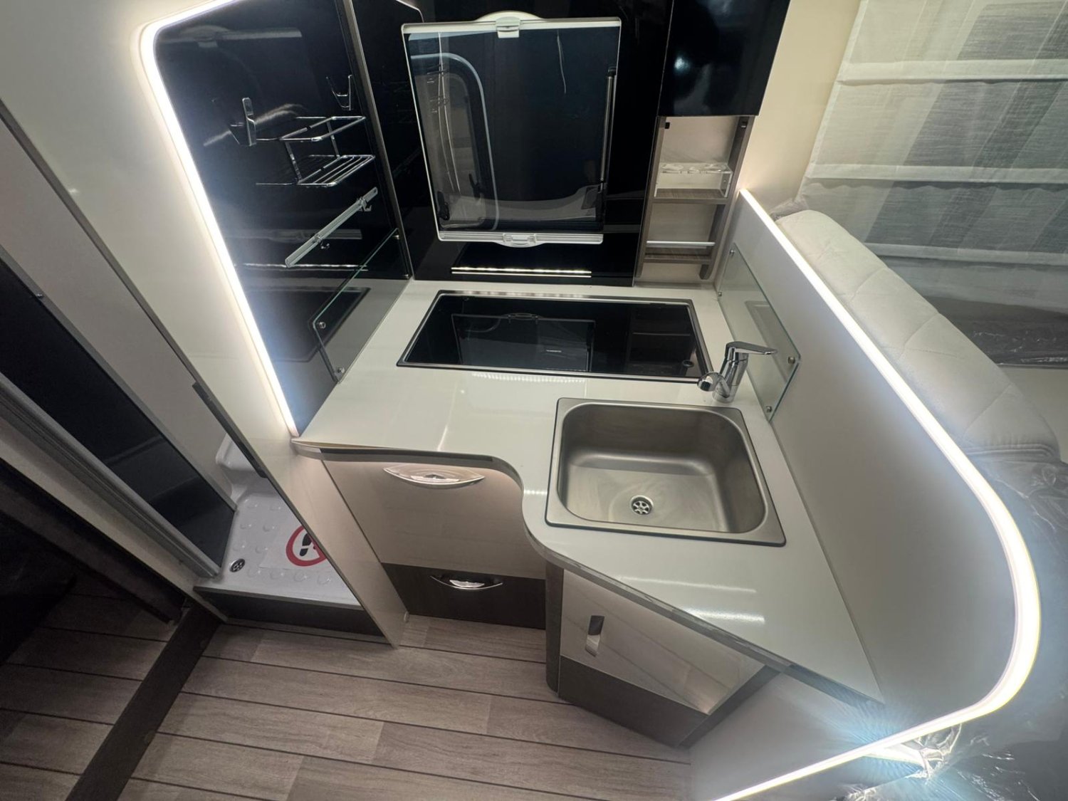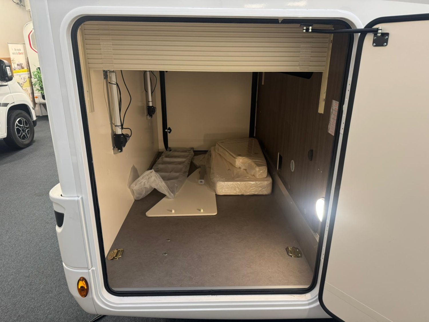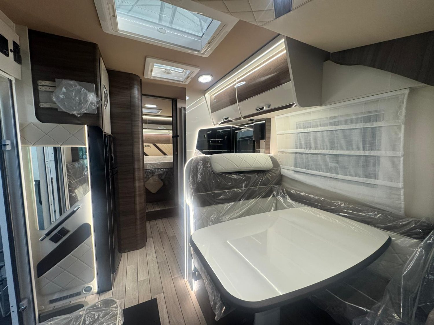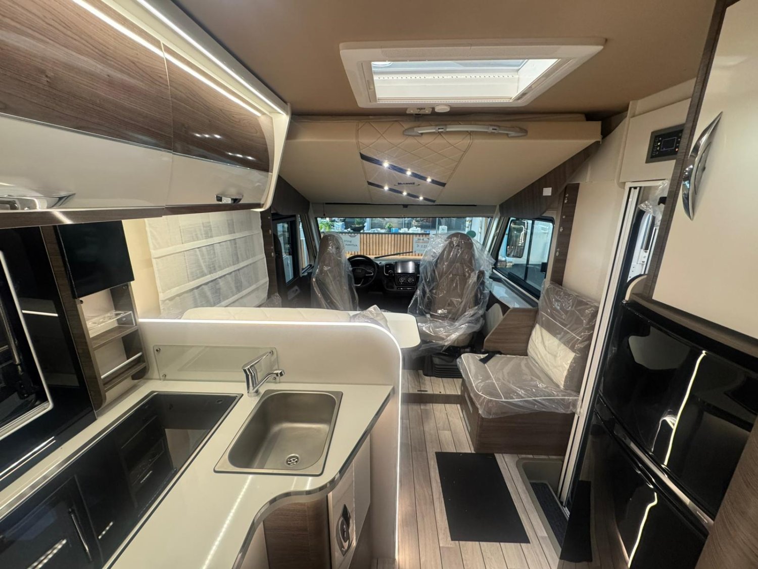 Jantes en alliage 16’’ bicolores· Volant et pommeau de vitesse en cuir· Tableau de bord Techno· Frein à main électrique· TPMS (capteur de contrôle de la pression des pneus)· Radio capacitive touch screen 9‘’Android Auto/Apple Car Play-Caméra de recul- Panneau solaire 200 W avec régulateur MPPT