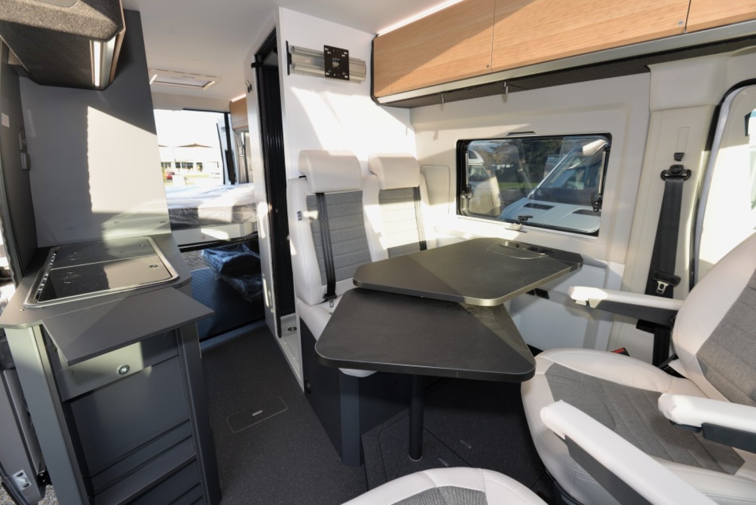 Livré de série avec des radars de recul, baies affleurantes, stores occultants en cabine, moustiquaire de porte ainsi qu’un cabinet de toilette modulable de dernière génération.