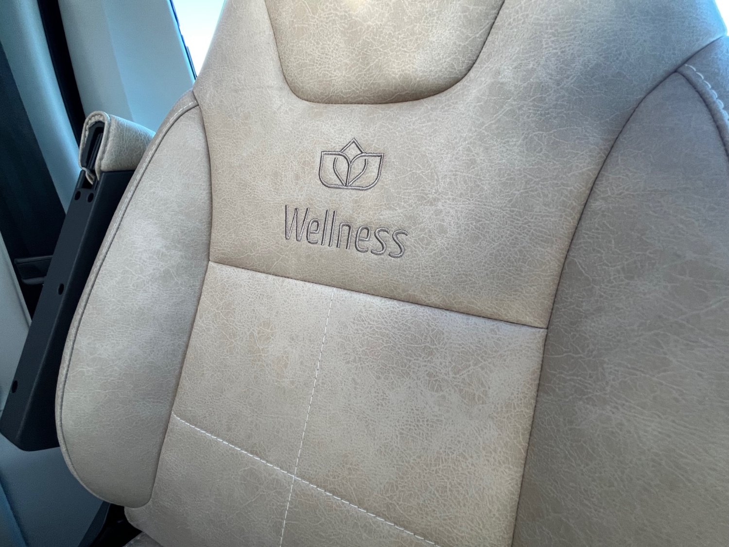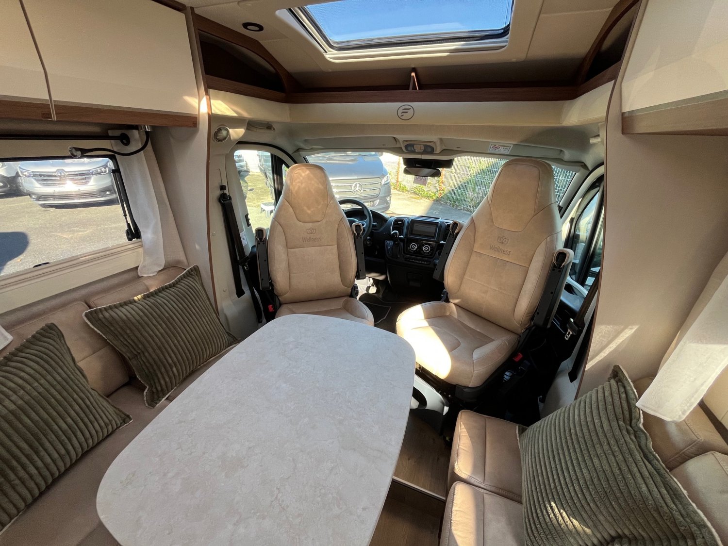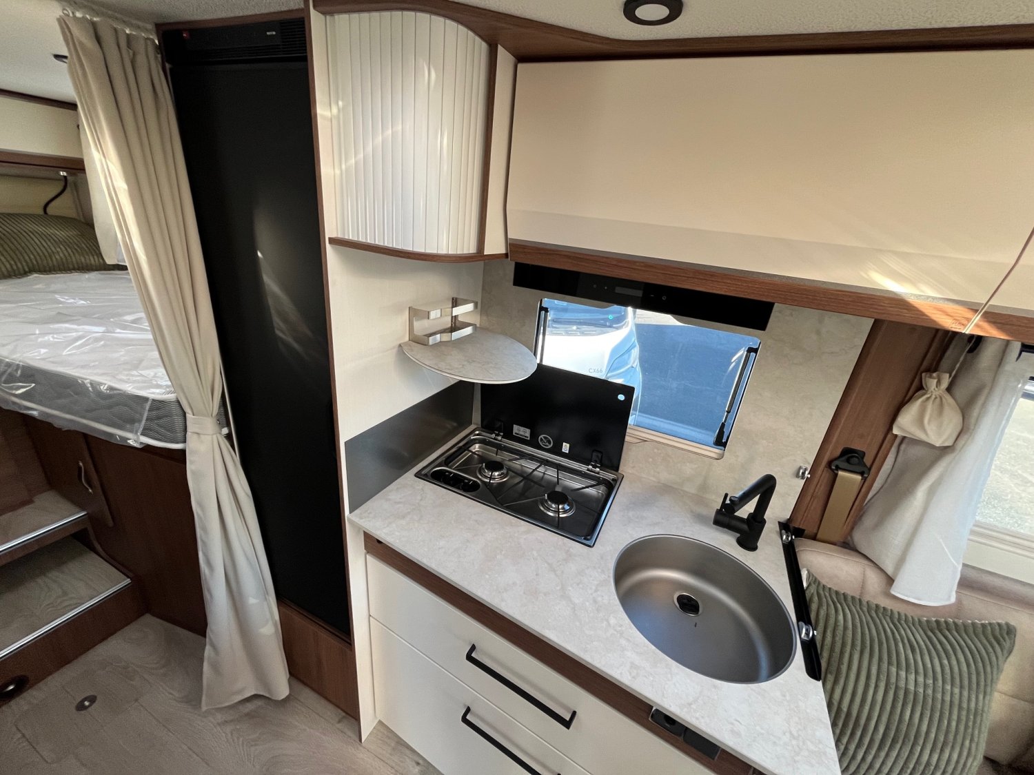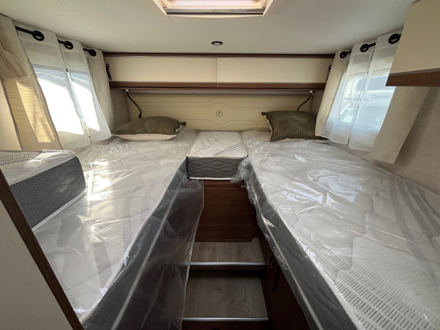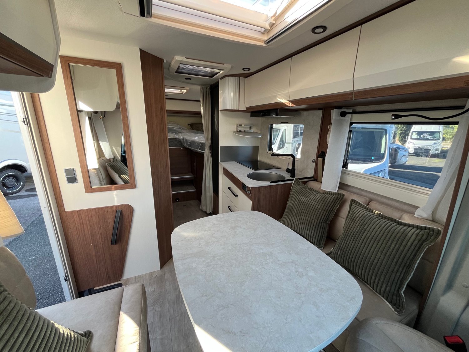 Cellule XXL nouvelle implantation, Salon face, face lumineux, Cuisine spacieuse avec grands tiroirs , à fermeture douce et réfrigérateur à , compression 150 L (dont 17 L congélateur), Chambre arrière : lits de 80×192 cm , et 80×200 cm, configurables en lits, jumeaux ou lit double, avec literie haut, de gamme, Salon convertible pour couchage , jusqu’à 3 personnes, Grande soute traversante , Nombreux rangements, Batterie cellule 100Ah Lithium , + Chauffage Truma 4D (diesel / électrique), Jantes aluminium, grilles d’aération, grises et volant cuir, Mobilier finition noyer et rétroéclairage, Led d’ambiance, Repose, pieds relax sur le siège passager, Signature olfactive « Élégance relaxante », , senteur Bergamote