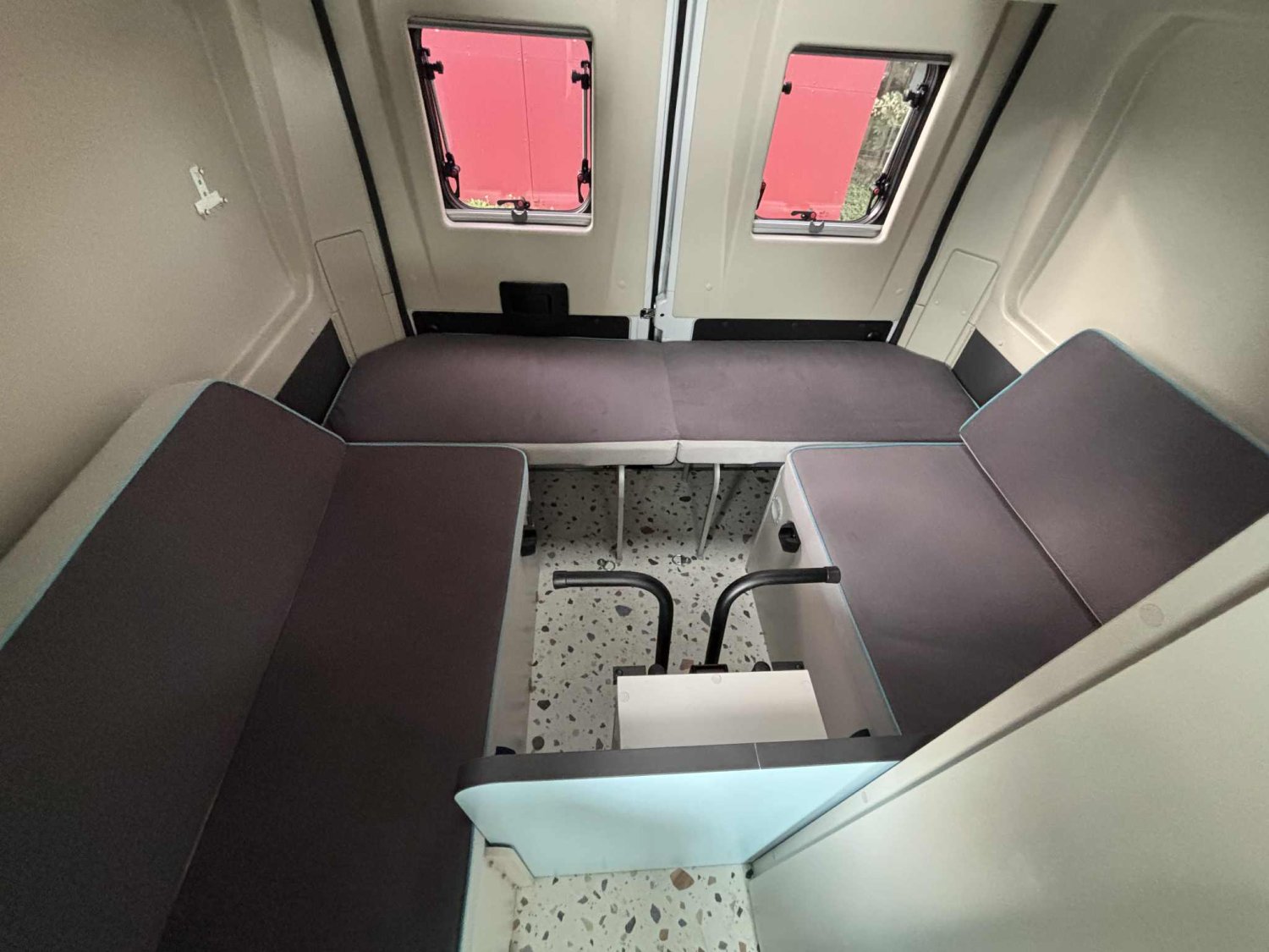 Couchage 2 places, Table arrière, Commandes au volant, Antenne Radio DAB, PACK ADVENTURE COMPREND, Douchette extérieure, Fenêtres arrières, Store intérieur cabine, PACK CONFORT COMPREND, PACK CONNECT COMPREND, Caméra de recul, Moustiquaire porte, Eclairage intérieur, Chauffage Webasto, Panneau solaire, Sytème multimédia, Store extérieur