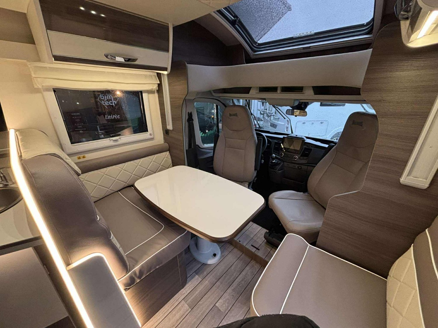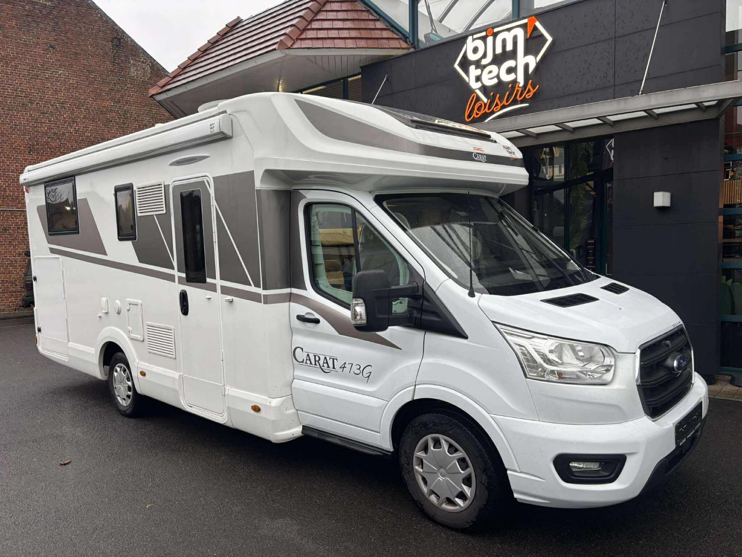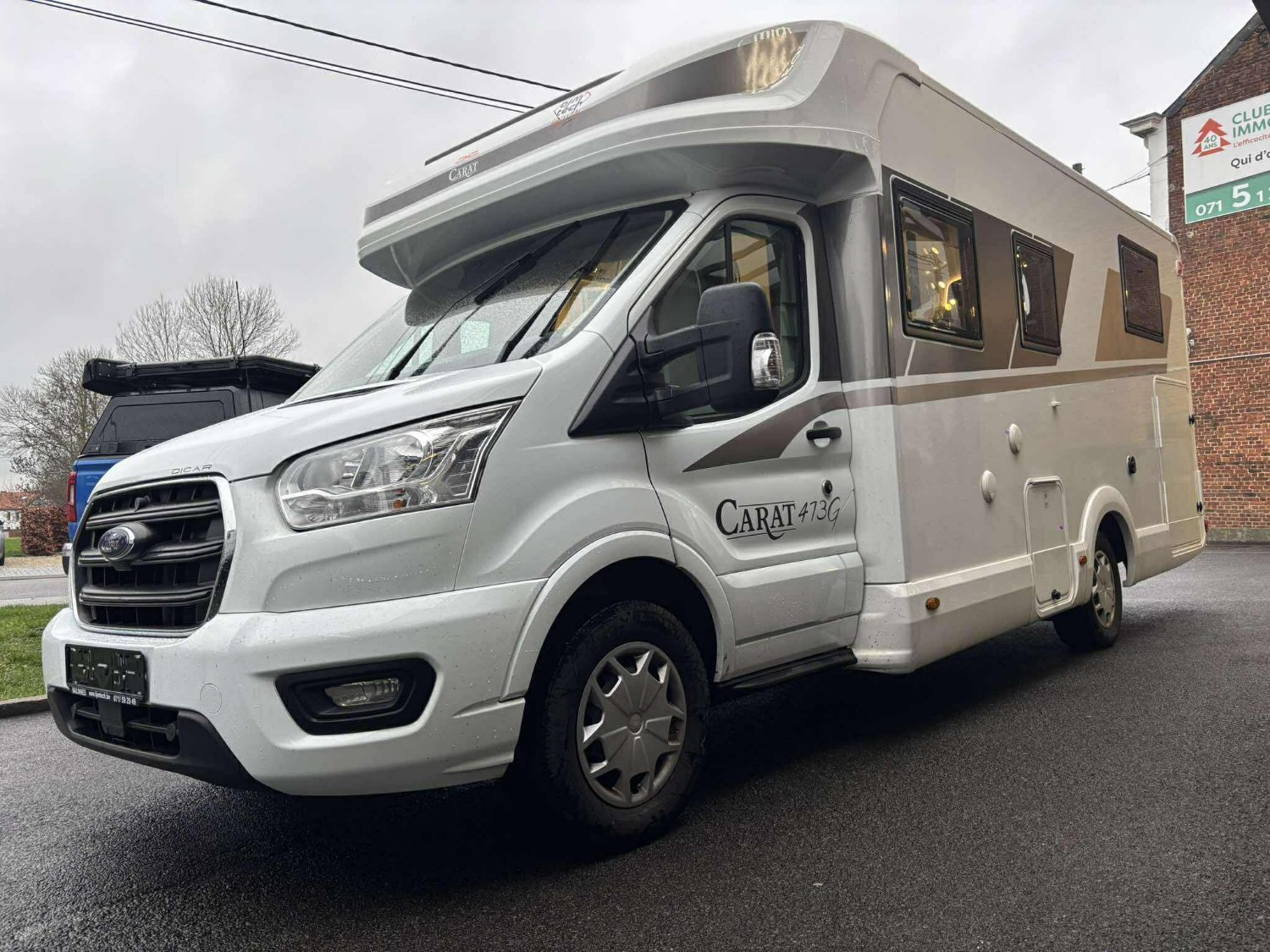 Disponible de suite : un magnifique camping-car d'occasion MC LOUIS CARAT 473, comme neuf et super équipé, avec lits jumeaux + lit pavillon + banquette transformable, salon lumineux et grande douche, à découvrir dans notre showroom à Nalinnes-Haies.