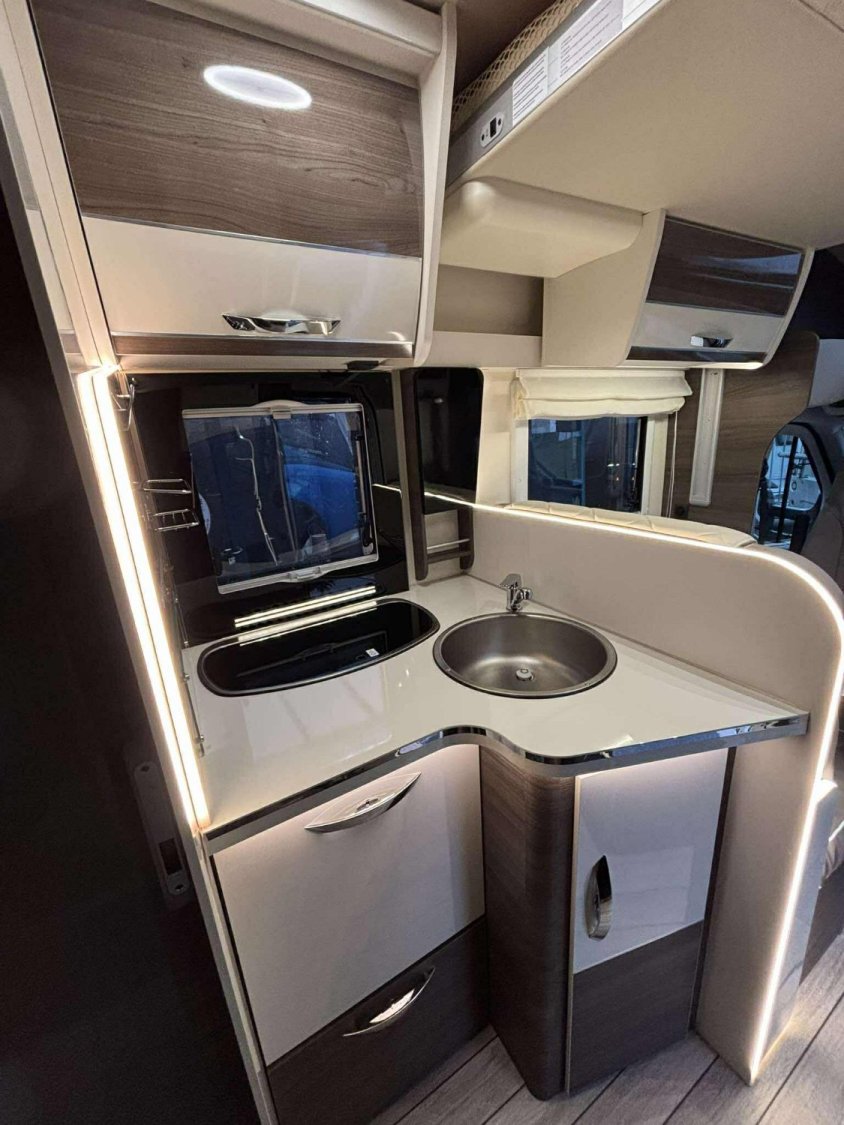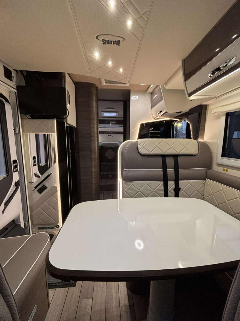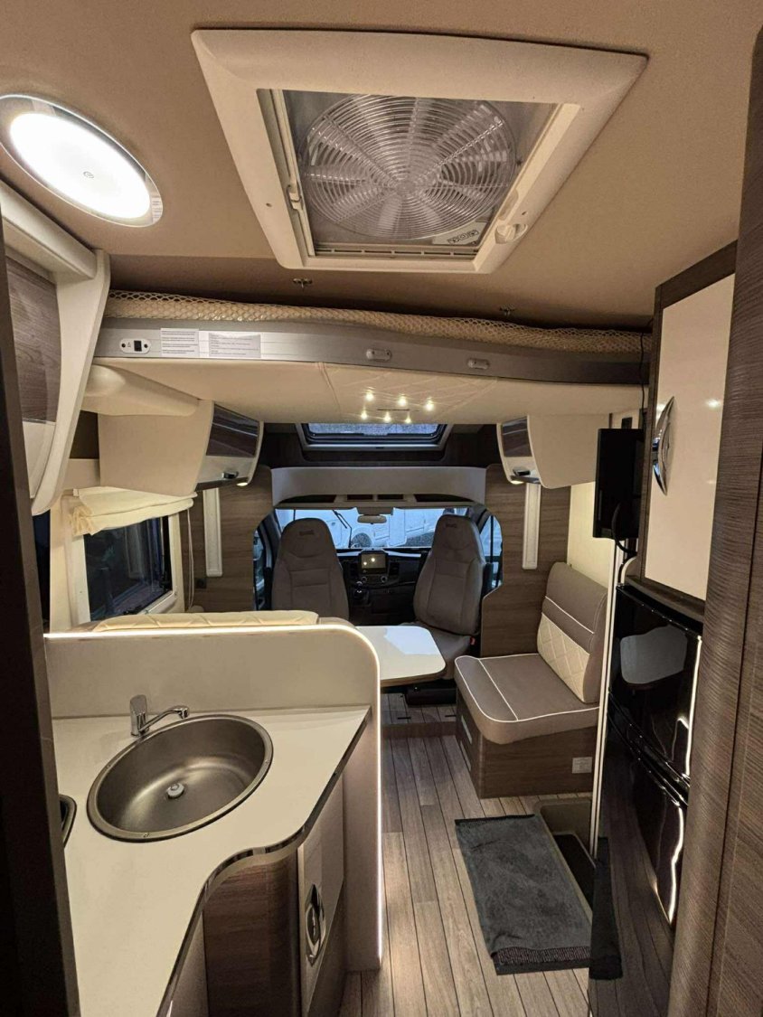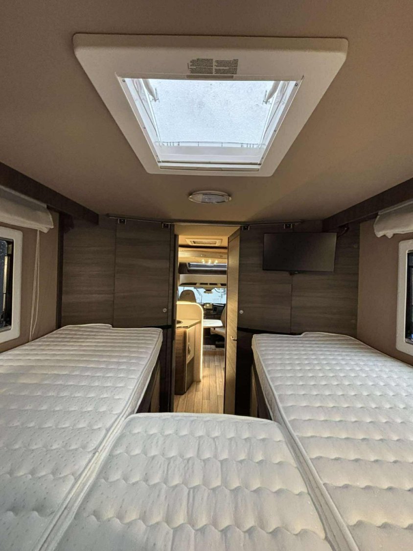 Disponible de suite : un magnifique camping-car d'occasion MC LOUIS CARAT 473, comme neuf et super équipé, avec lits jumeaux + lit pavillon + banquette transformable, salon lumineux et grande douche, à découvrir dans notre showroom à Nalinnes-Haies.