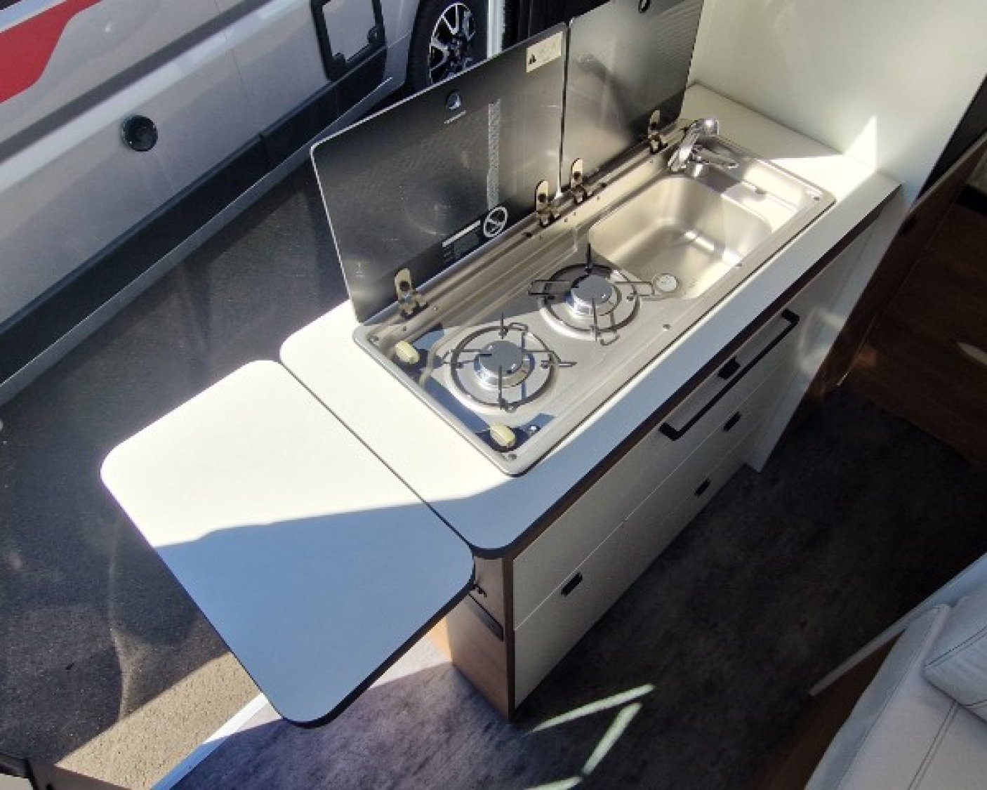 AMBIANCE MOBILIER ASPEN, AUTORADIO 6.7" DAB, BATTERIE SUPPLEMENTAIRE, CAMERA DE RECUL, CLIMATISATION, COULEUR BLANC, FRIGO BAS 140 L, JANTES ACIER 16", MOUSTIQUAIRE, OCCULTATIONS CABINE COULISSANTES, PANNEAU SOLAIRE 120 W, PARE CHOC BRUT, Prix au tarif en vigueur au moment de la livraison, REGULATEUR DE VITESSE, RESERVOIR CARBURANT 90 L, RETROVISEURS ELECTRIQUES, SELLERIE JURA/OPALE, TRACTION SYSTEME, TRUMA COMBI 4