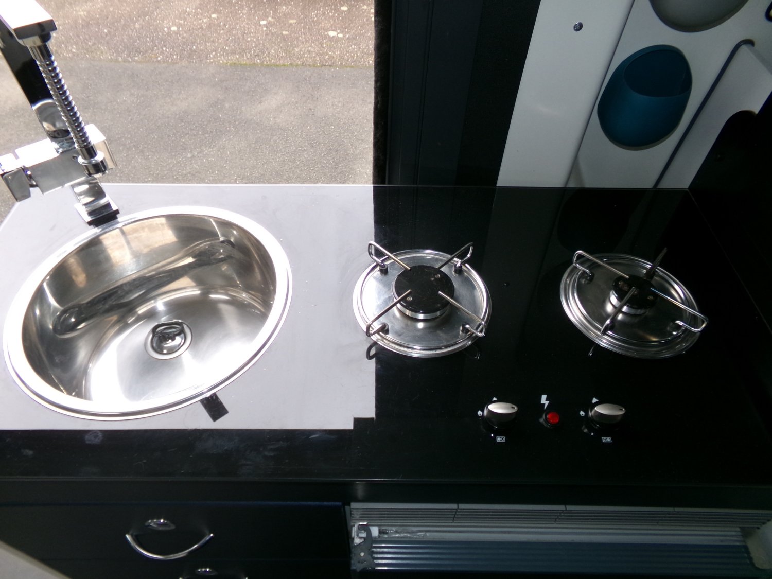 TV - PARABOLE, STORE EXTÉRIEUR, CAMÉRA DE RECUL, MOUSTIQUAIRE DE PORTE, PANNEAU SOLAIRE, BOITE MANUELLE 6V, ATTELAGE, PORTE VÉLOS (pour 2), DOUCHETTE EXTÉRIEURE, RADIO, CLIM CABINE