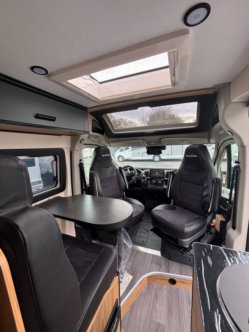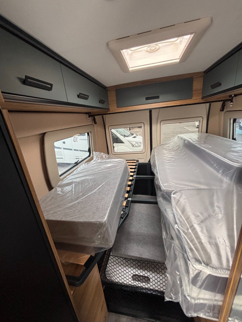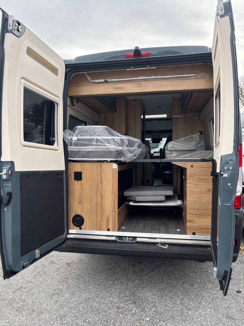 Le Duo Van crée en 2014, a été spécialement conçu pour les couples, offrants des espaces de vie généreux. Ses lits arrière jumeaux sur sommiers à lattes peuvent se transformer en un grand lit simple, avec de nombreux rangements intégré. Son coin toilette, avec WC escamotable et paroi de douche, est à la fois pratique et spacieux.
