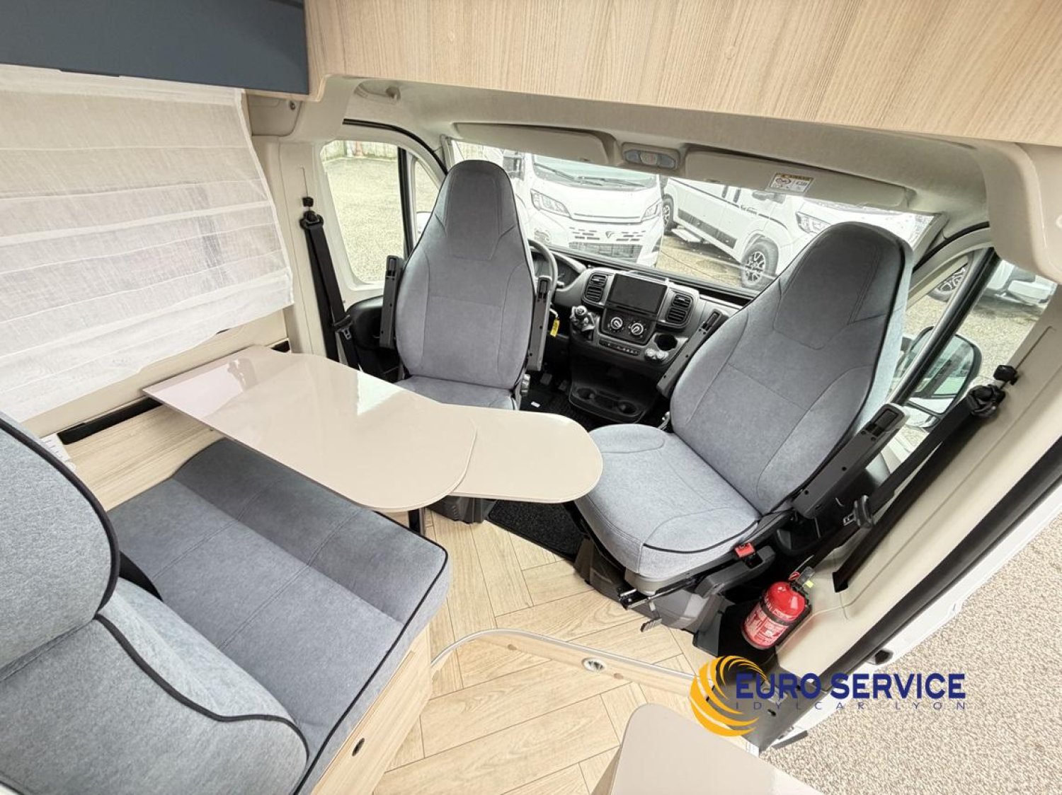 chauffage combi 6000W gasoil, couverture isolante de tableau de bord, rideaux d'isolation thermique des baies, store dinette, réservoir d'eaux usées isolé et chauffé.