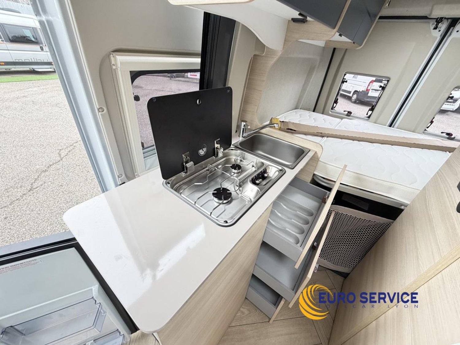 -Store extérieur - auvent, panneau solaire 200W, éclairage extérieur porte d'entrée, moustiquaire de porte, stores intérieur cabine, compléments couchage dinette.