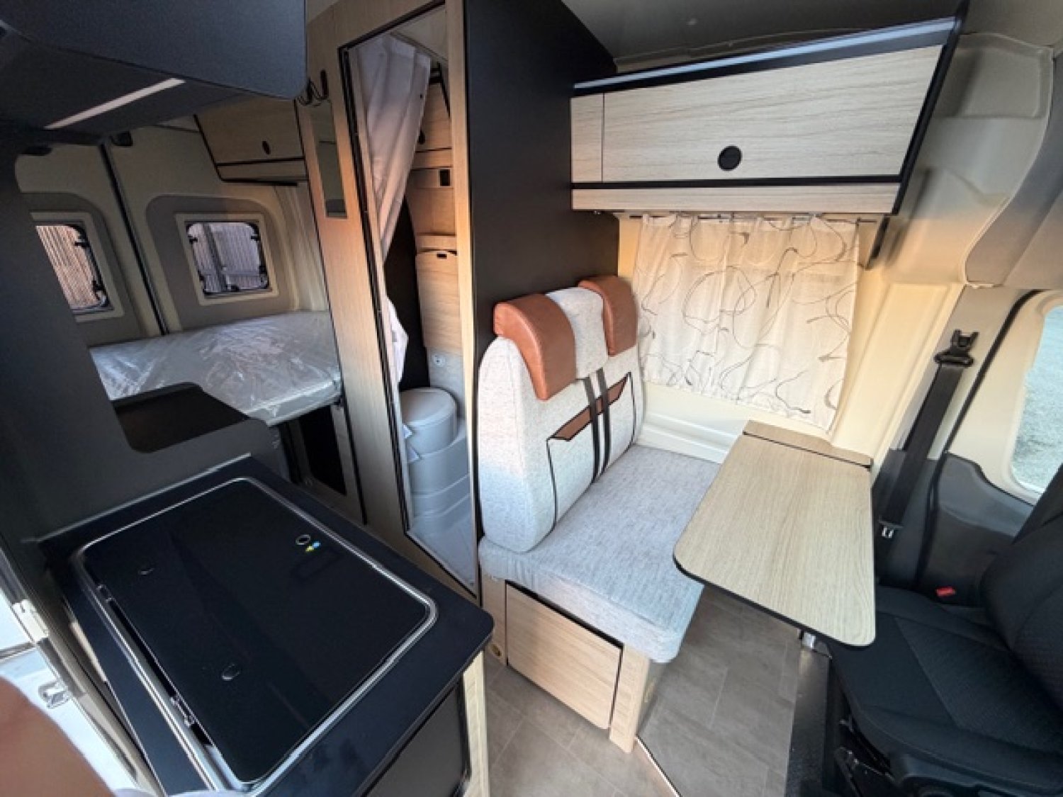 Grâce à ses 4 places carte grise, ses 3 places de couchage (dont une aménageable) et son lit arrière transversal avec hayon panoramique, c’est la solution idéale pour partir à l’aventure, profiter de longs week-ends ou vivre la ville en conservant un esprit outdoor. Et à bord, tout est sous contrôle : avec la fiabilité mécanique Ford et la boîte automatique de série, chaque trajet est fluide, silencieux et relaxant. Pour un plaisir de conduite signé Rimor.