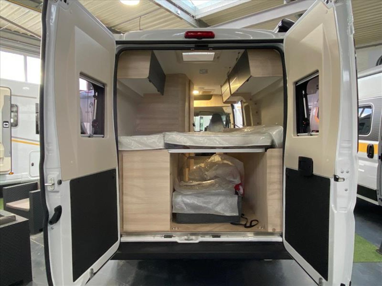 Avec double accoudoirs, Baies arrière ouvrantes, Chauffage au gaz, Climatisation manuelle de cabine, Coloris Blanc, Double airbag, ESP Traction +, Extension table dinette, Fenêtres double-vitrage avec combiné stores moustiquaire, Fix and go, Hill descent control, Jantes acier avec enjoliveurs 15'' gris, Lanterneau panoramique, Marchepied électrique, Mobilier Klein, Pneus 4 saisons, Précâblage caméra de recul, Pré-disposition panneau solaire, Pré-équipement TV, Prises USB/USB-C, Régulateur / limiteur de vitesse, Rétroviseurs électriques dégivrants, Rideaux d’isolation thermique des baies de cabine, Salle d'eau avec fenêtre, Sièges de cabine pivotants réglables en hauteur, VEHICULE NEUF D EXPOSITION