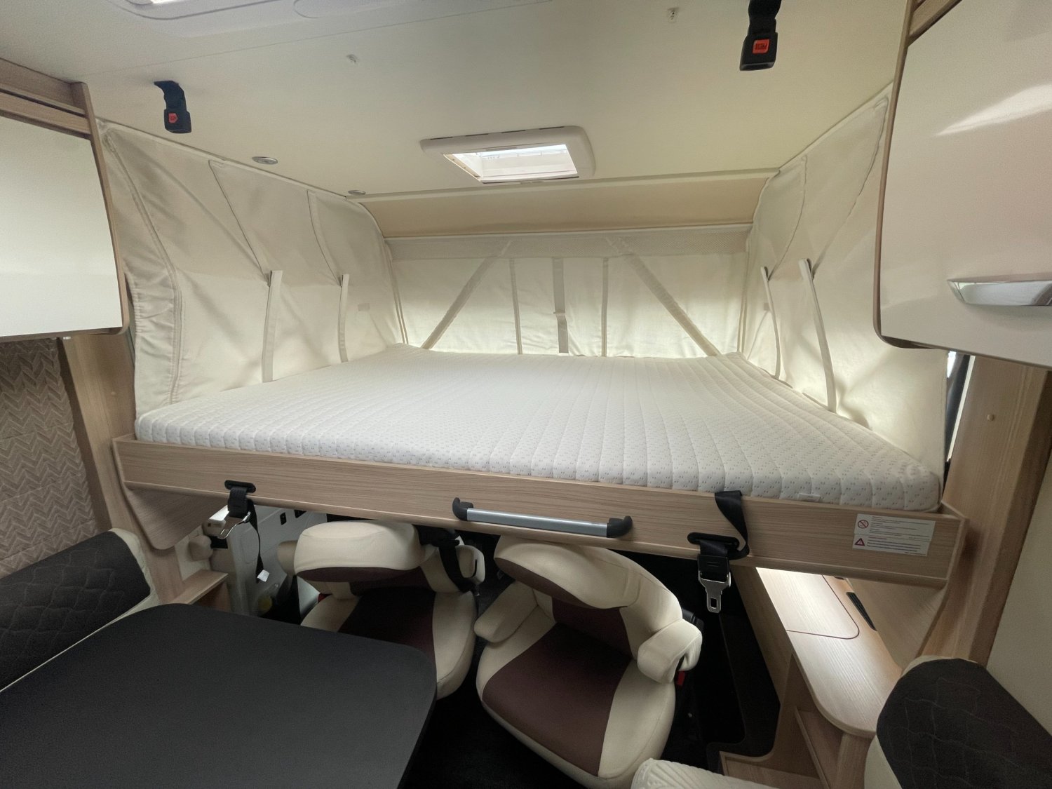 Antenne satellite, Prise 220, Prise 12v, prise USB, Store exterieur, Frigo 142L, Attelage, Porte 2 vélos, TRUMA COMBI 6 GAZ, Douche et WC séparés, Dimension lit central: 190x150, Lit de pavillon: 194x150, Jantes alu, Caméra de recul, Ecran multimedia, Boite manuelle 6 vitesses
