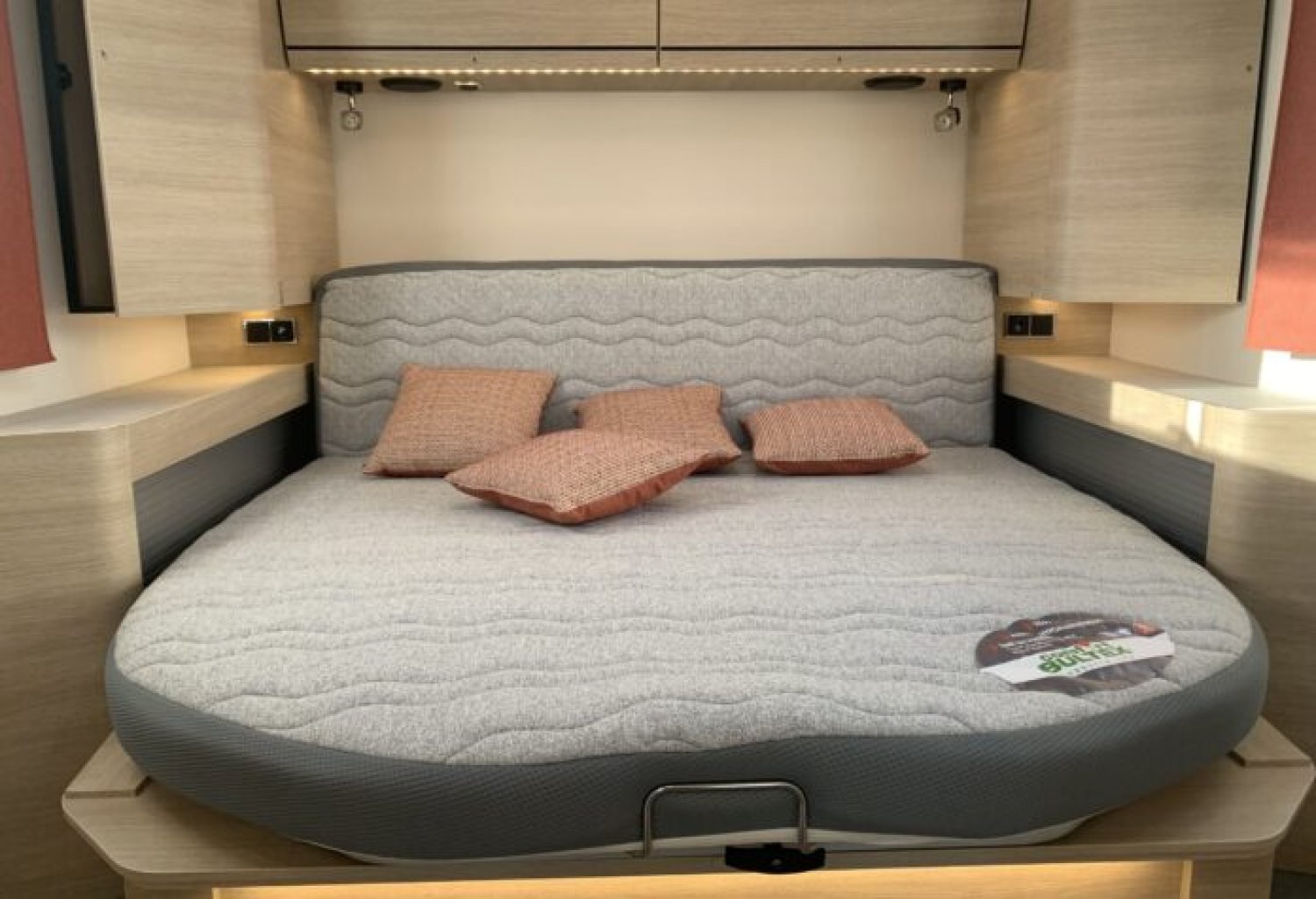 Aménagement spacieux : lit central, salon accueillant et finitions premium.