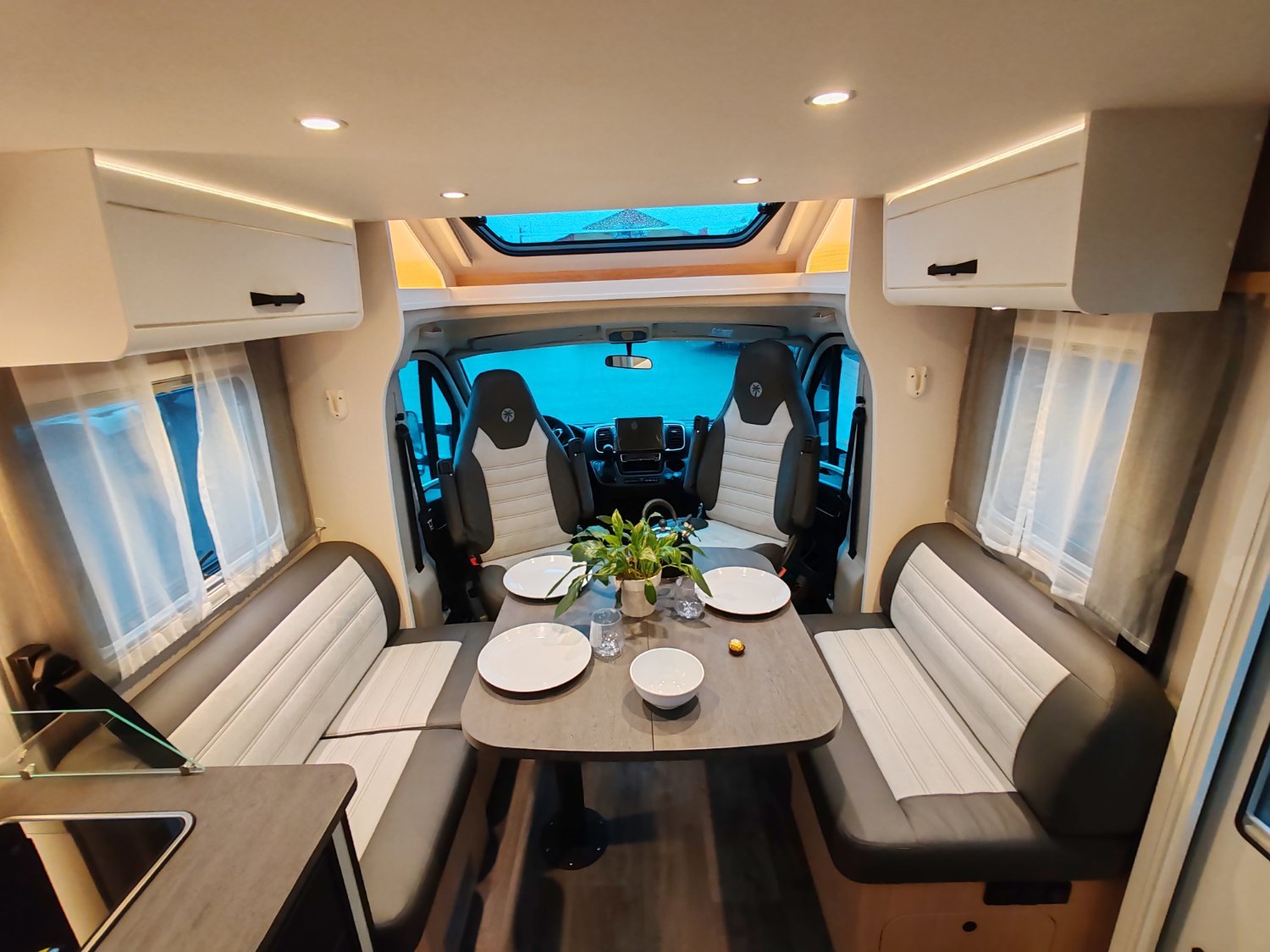 Citroën Jumper 3.500 kg | 2.2 l | 103 kW | 140 ch | Euro 6 | boîte de vitesses manuelle à 6 rapports, Blanc Citroën, Stickage Adventure, Ambiance intérieure Adventure, Pare-chocs arrière avec parties thermoformées montantes, Lanterneau panoramique de cabine, Baies à cadre, Portillon de service côté gauche (dimensions selon implantation), Grand réfrigérateur 156 l, dont freezer séparé 29 l, Modification des lits jumeaux en lit double, Bandeau lumineux entre feux arrière, Porte cellule de qualité avec baie, Porte cellule avec moustiquaire, Lanterneau panoramique 70 x 50 cm, Lanterneau transparent 40 x 40 cm, Pare-chocs avant laqué, Jupe du pare-chocs avant de couleur noire, Feux antibrouillard, Volant et pommeau du levier de vitesses en cuir, Tableau de bord avec finition aluminium (Techno-Trim), Jantes aluminium 16" bi-tons