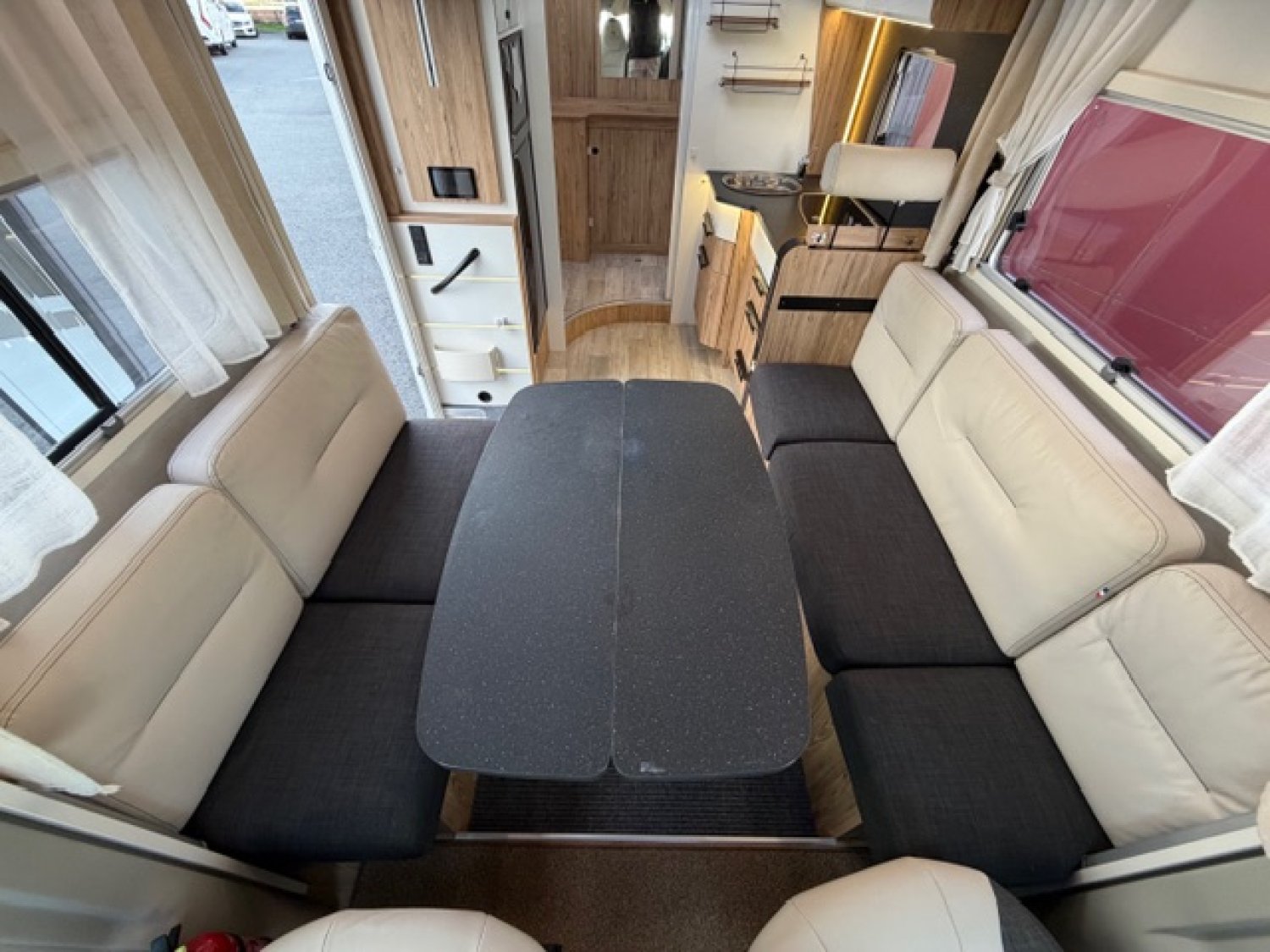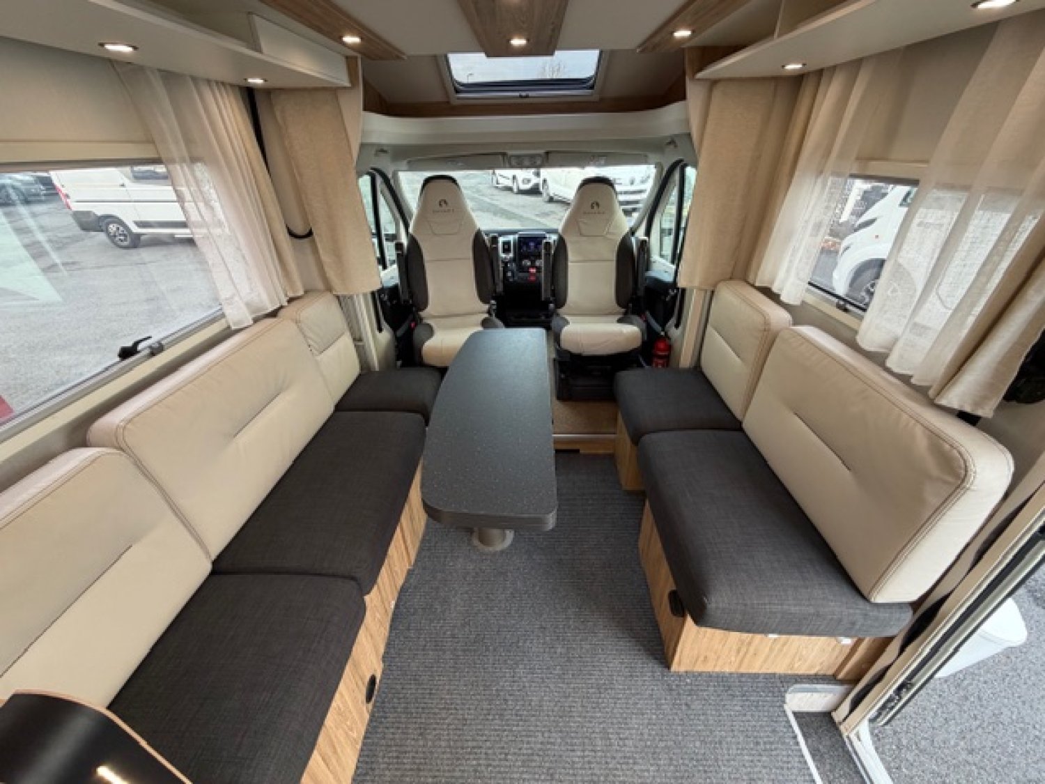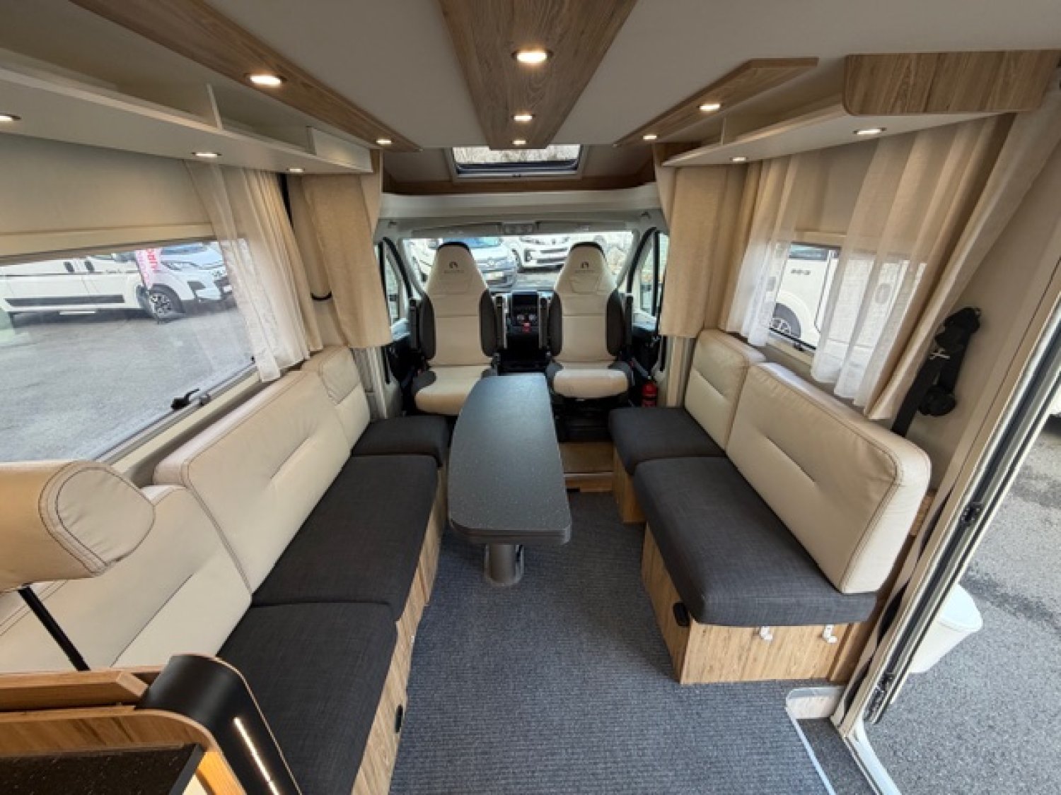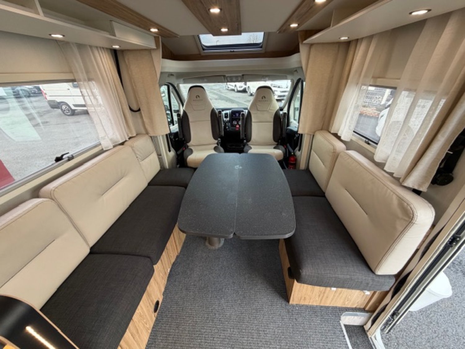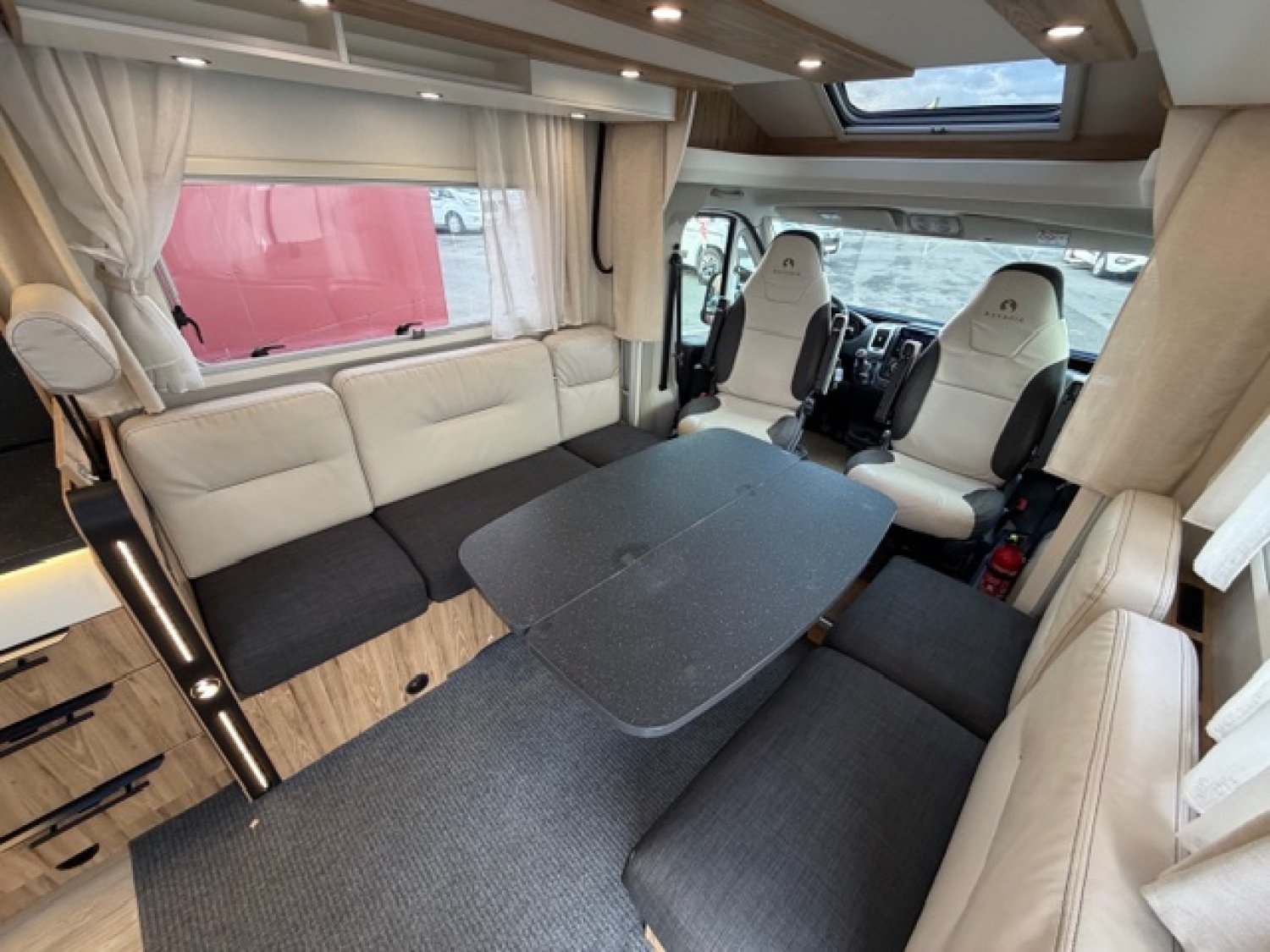 Station multimédia / Caméra de recul, Grand frigo / congélateur, Skydome, Heel descent, Traction +, 2 Panneaux solaires, 3 batteries AGM, Télévision, Antenne satélite automatique, Occultant pare brise, Moustiquaire de porte cellule, Volant multifonction, Volant et pommeau cuir, Jantes alu 16'', Store extérieur, Tiroir bas de caisse, Moquette cellule