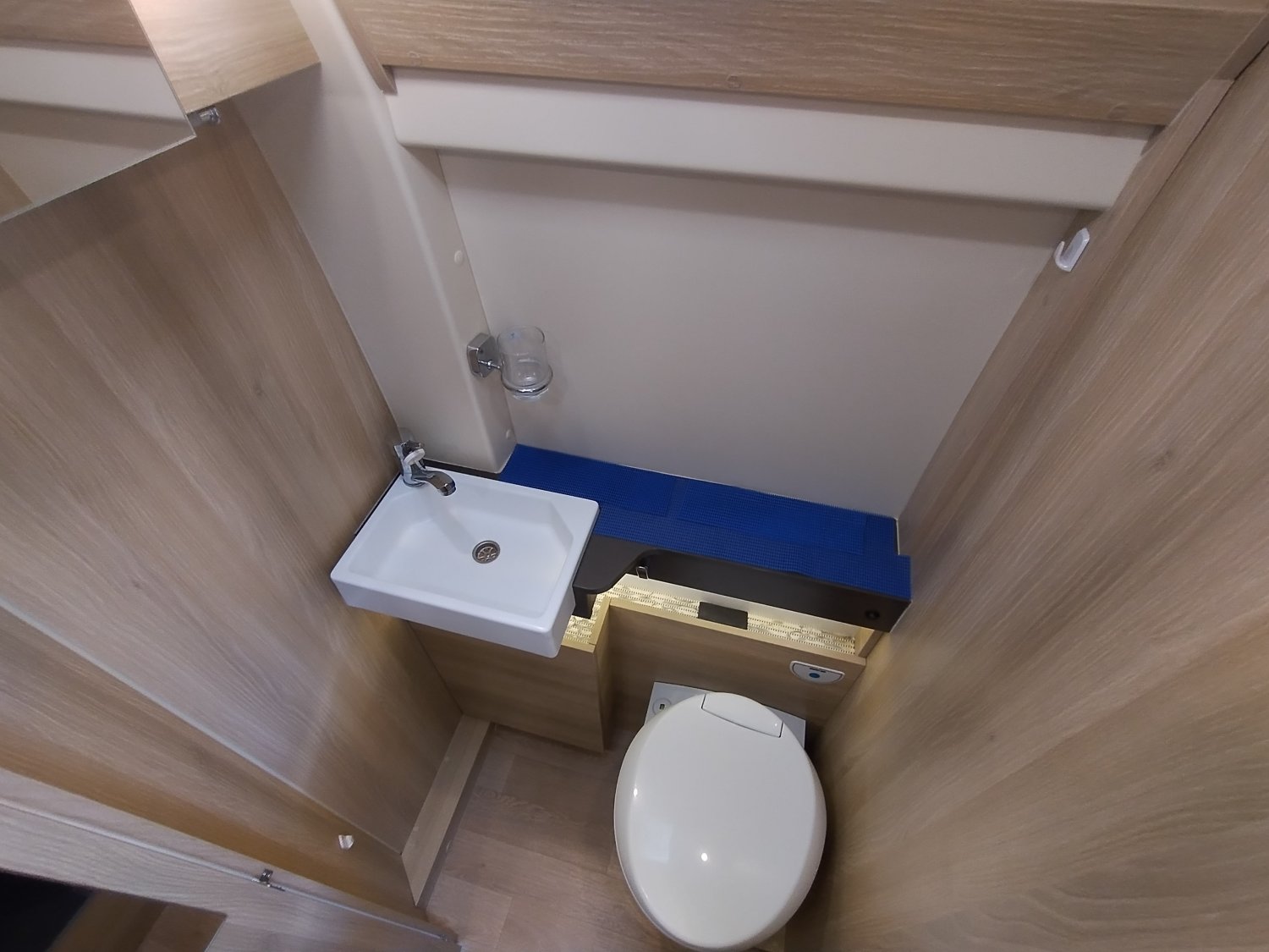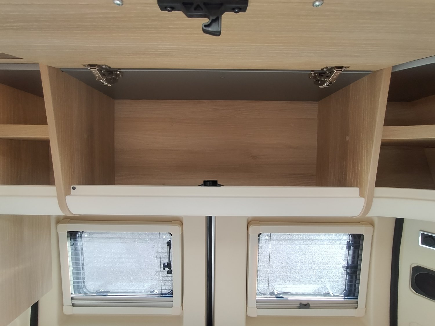 Les nombreux rangements et la modularité caractérisent également ce fourgon grâce entre autres à son astucieuse douche séparé des WC qui intègre un dressing et vous permet d’avoir une double cloison de séparation entre le couchage et l’espace de vie à l’avant. A l’arrière le couchage transversal intègre aussi de très nombreux rangements !
