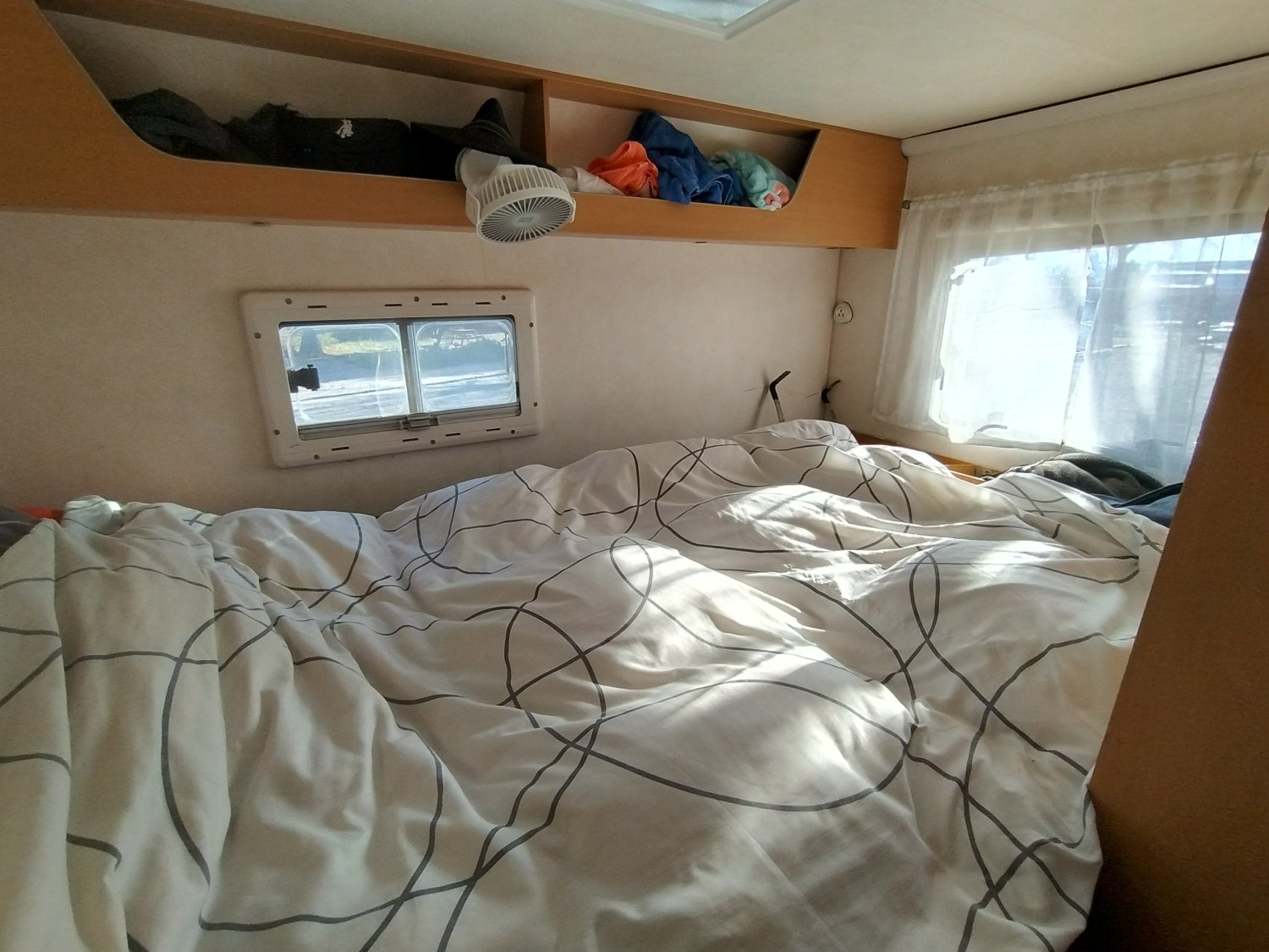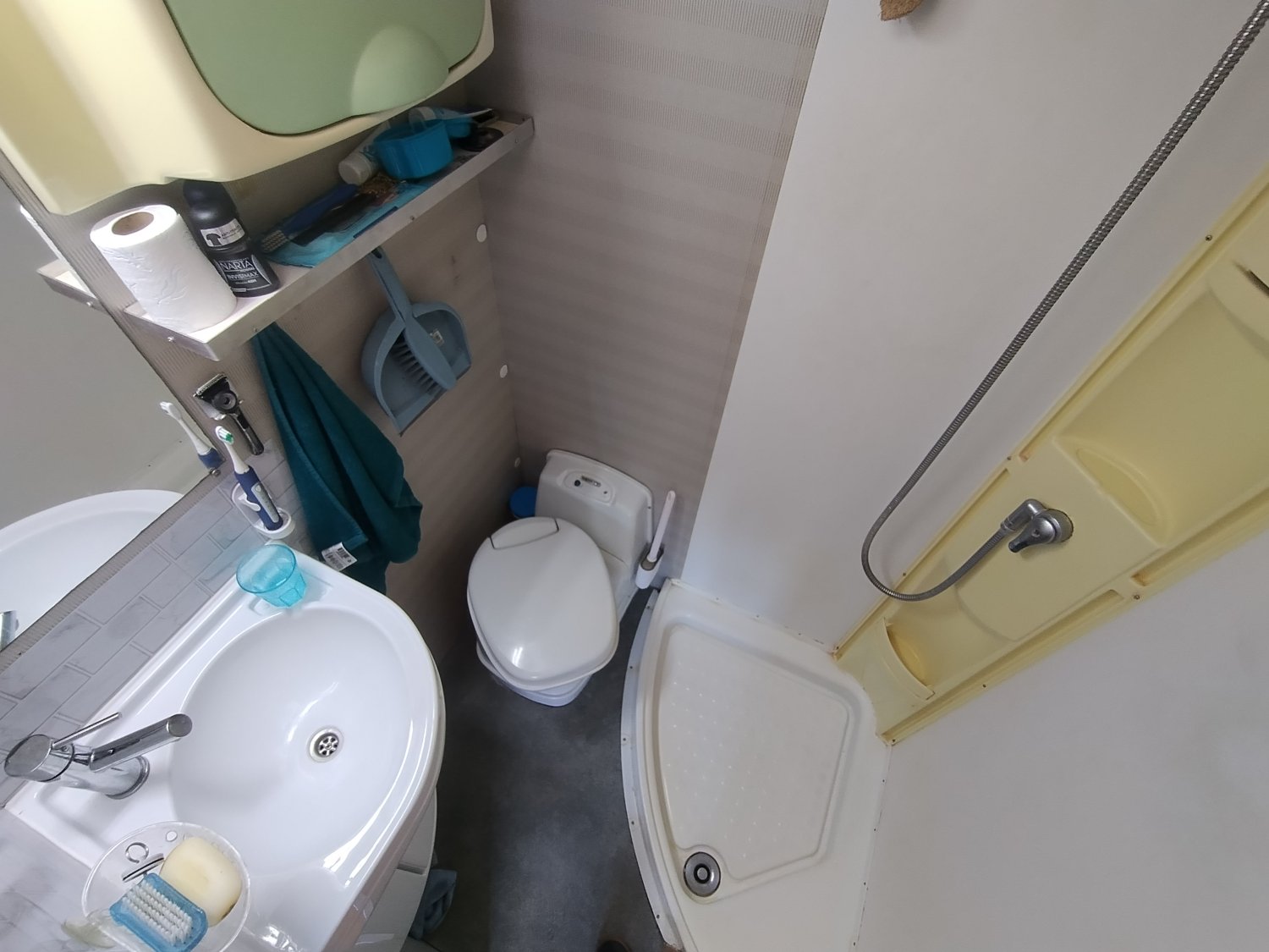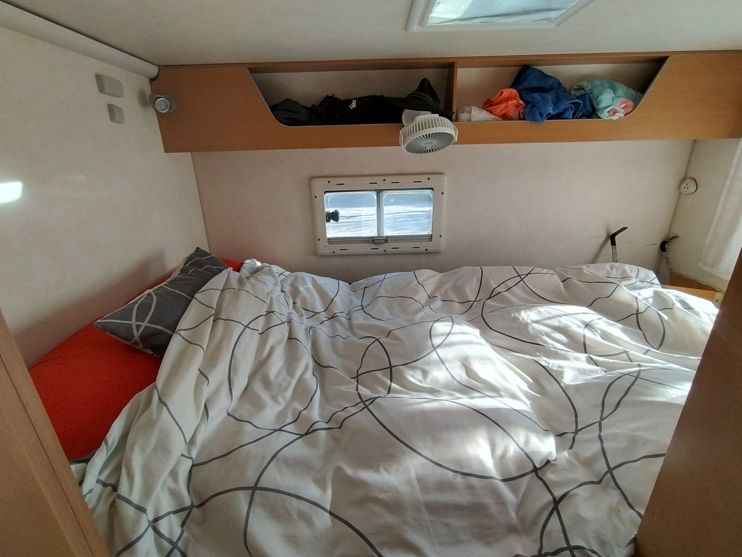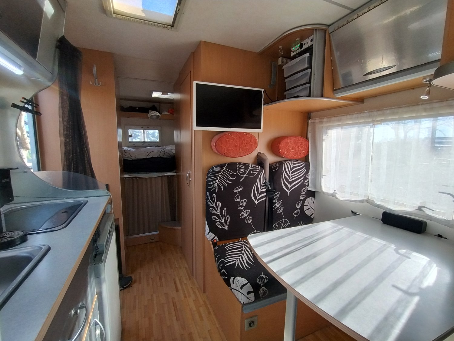 Une implantation idéale pour un couple avec son lit permanent transversal. Une cuisine bien équipée aux nombreux rangements pour ce gabarit et une salle d'eau spacieuse et fonctionnelle. Le tout complété par une grande soute accessible depuis l’intérieur.